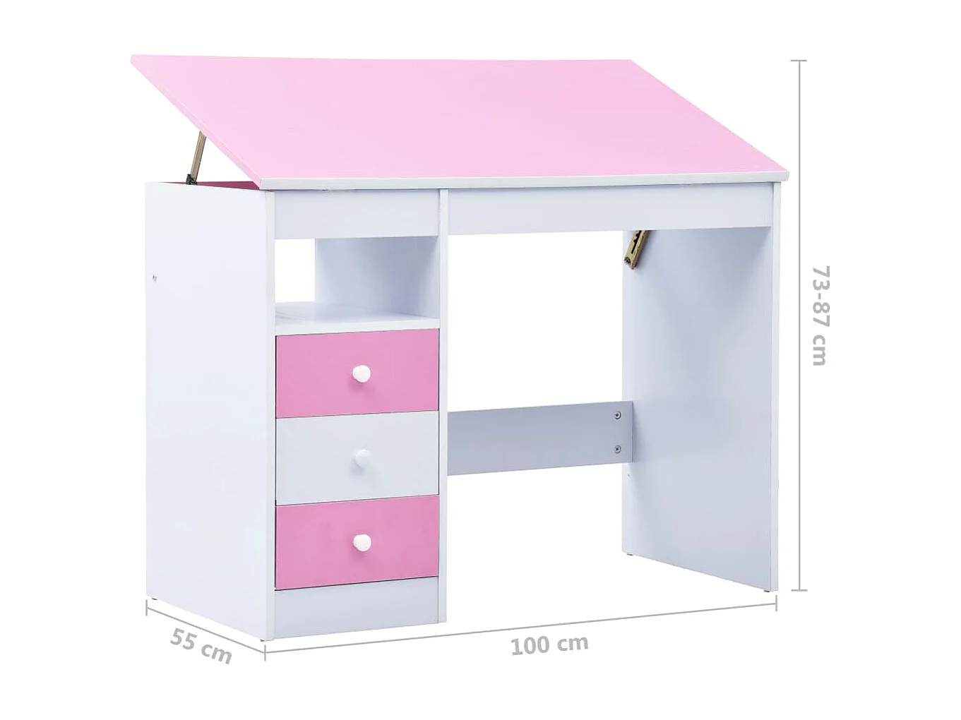 Kinderschreibtisch Kippbar Rosa und Weiß