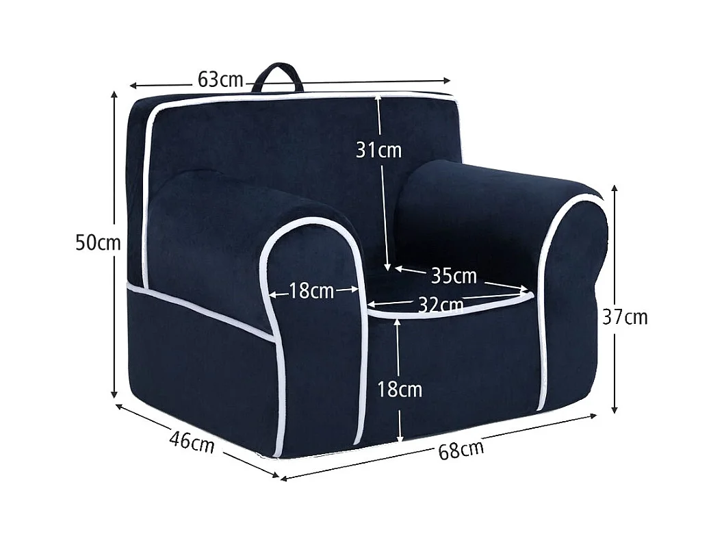 Gepolstertes Kindersofa mit Schaumstofffüllung & Armlehne & Handgriff 68 x 46 x 50 cm Marineblau