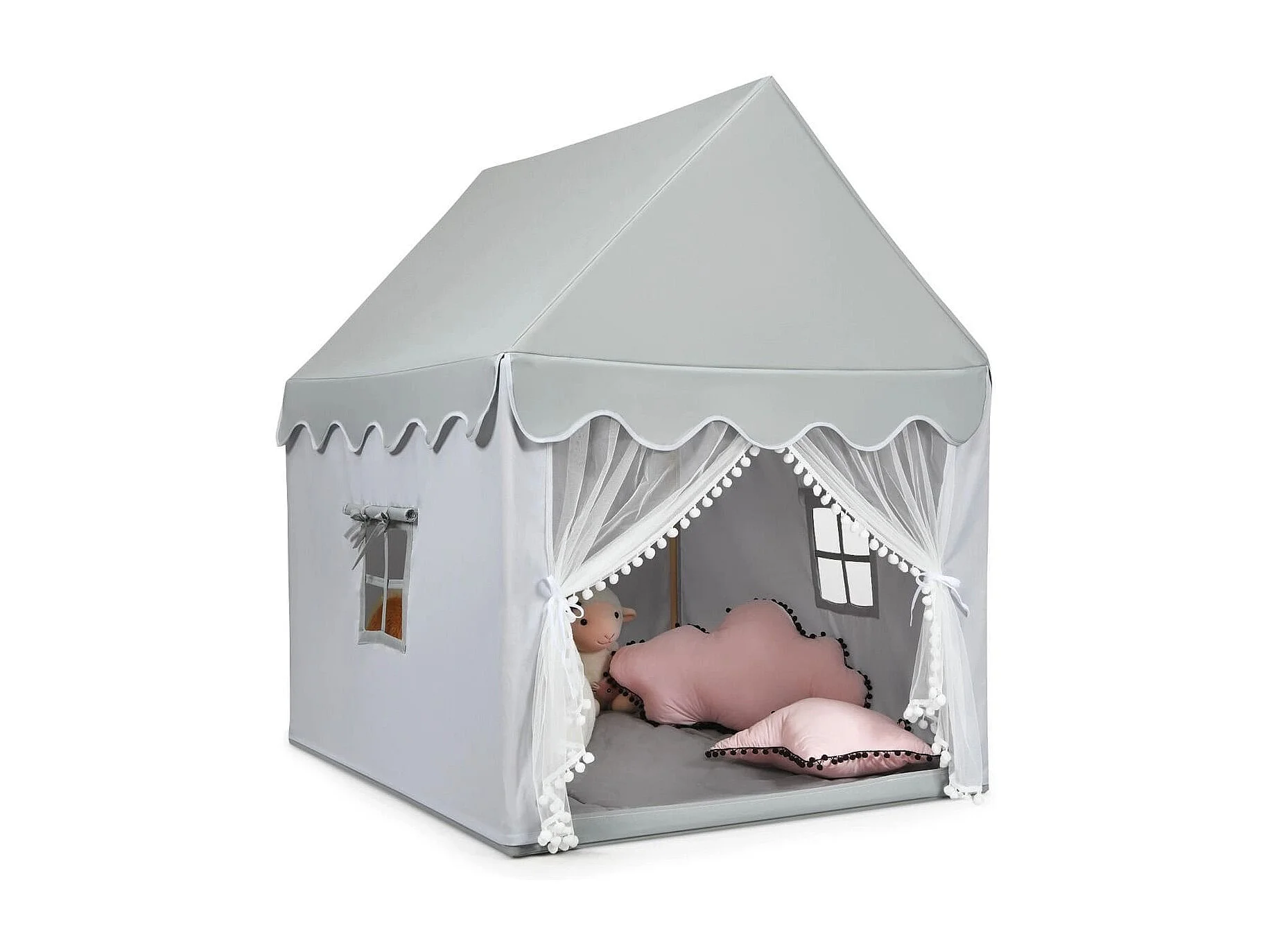 Kinderspielhaus Spielhaus mit Massivholzrahmen & Baumwollmatratze 120 x 105 x 140 cm Grau