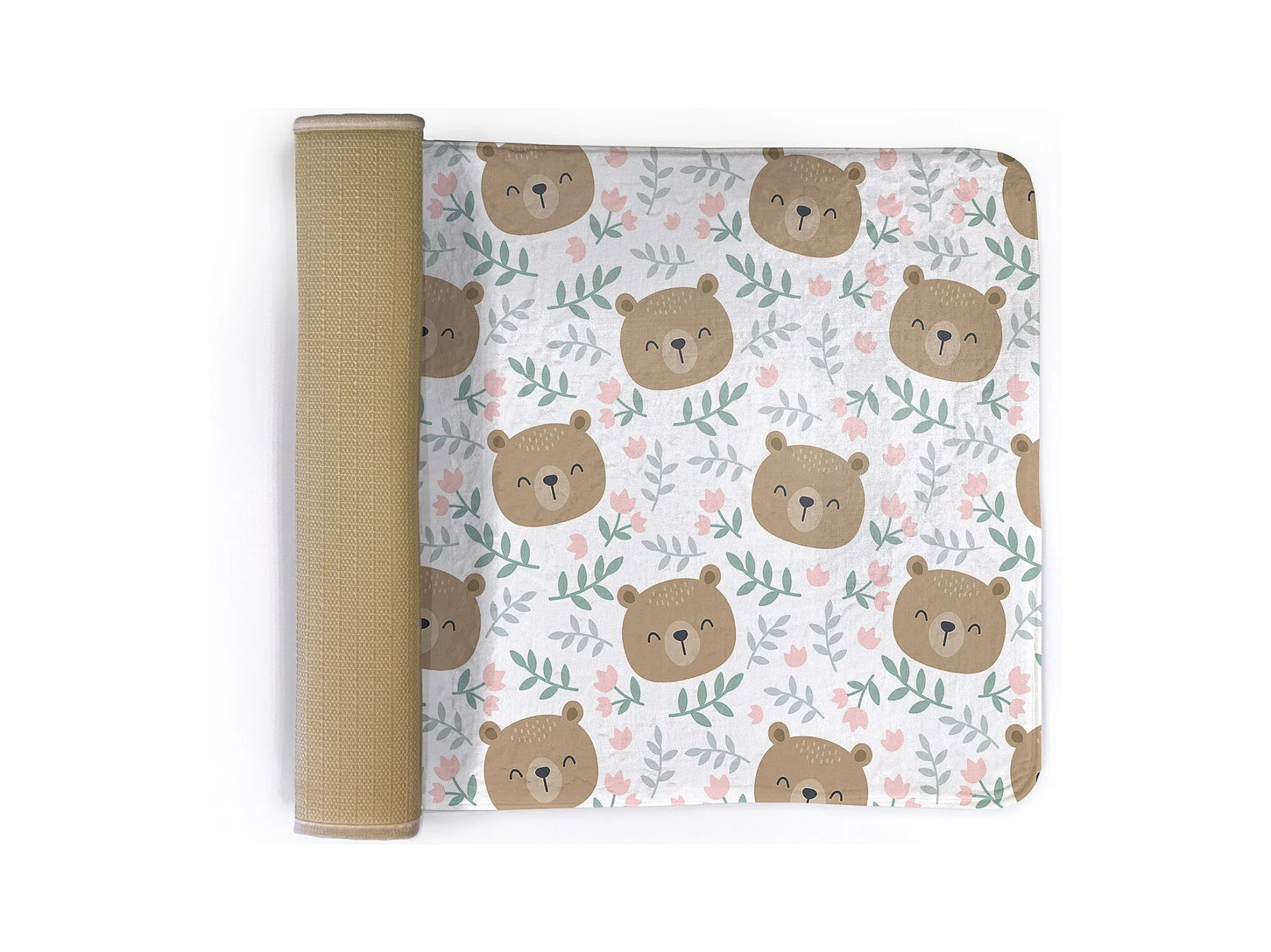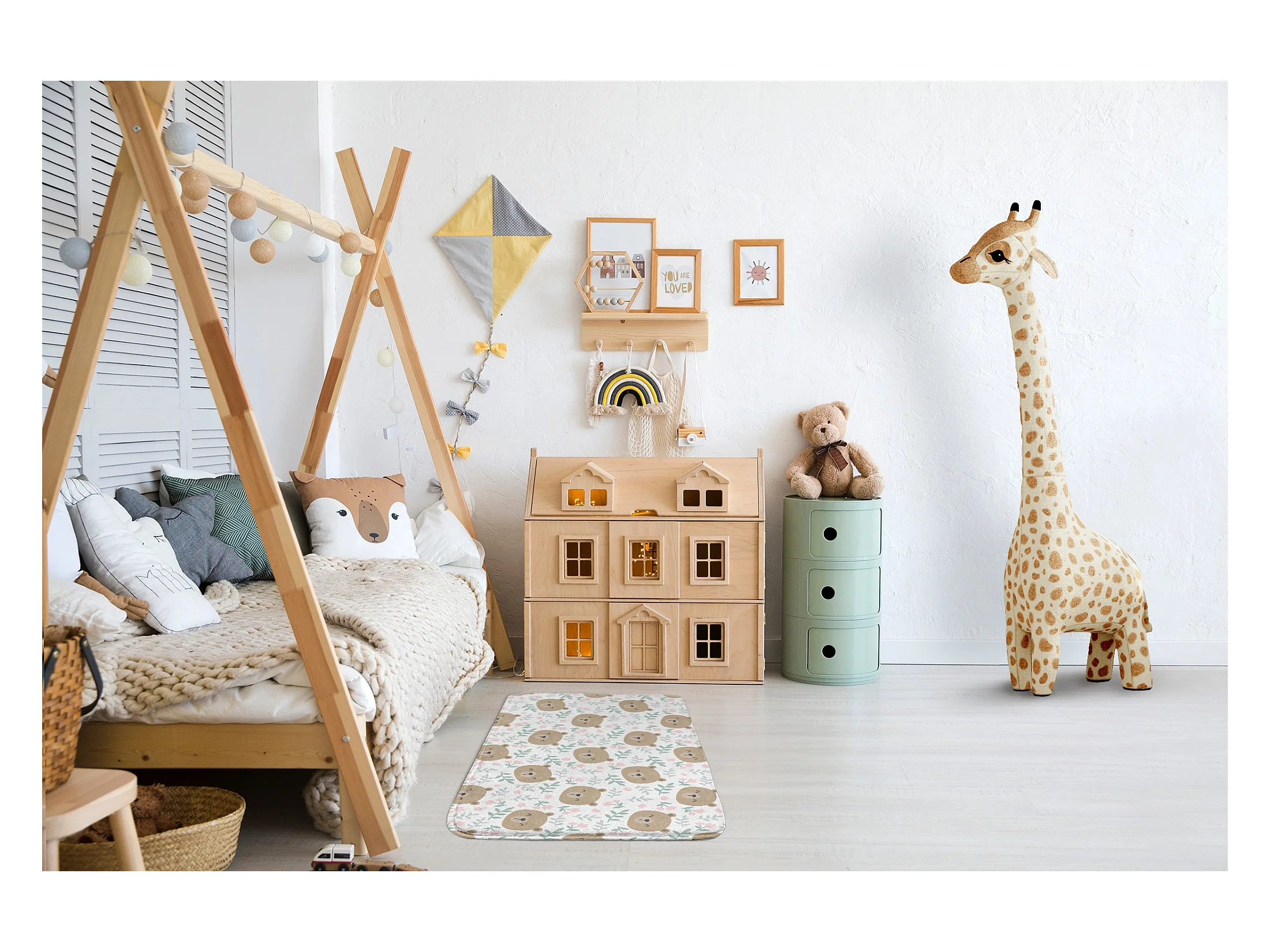 Kinderteppich, 75x45 cm Teddybär und Blumen Kinderteppich, für Kinderzimmer
