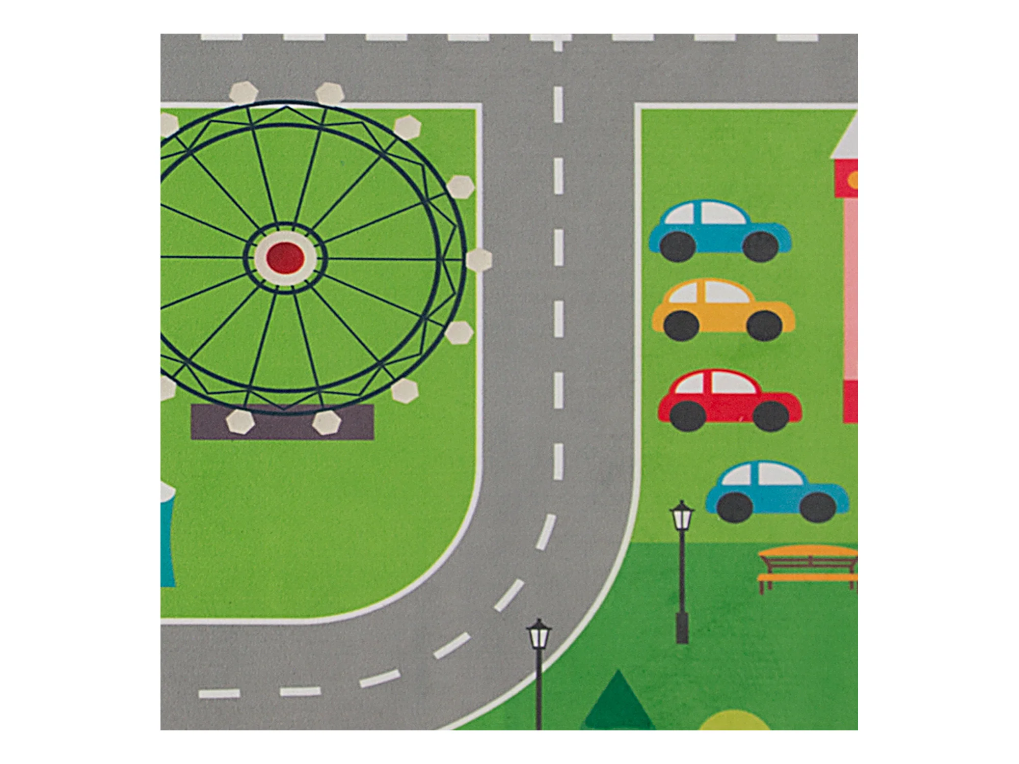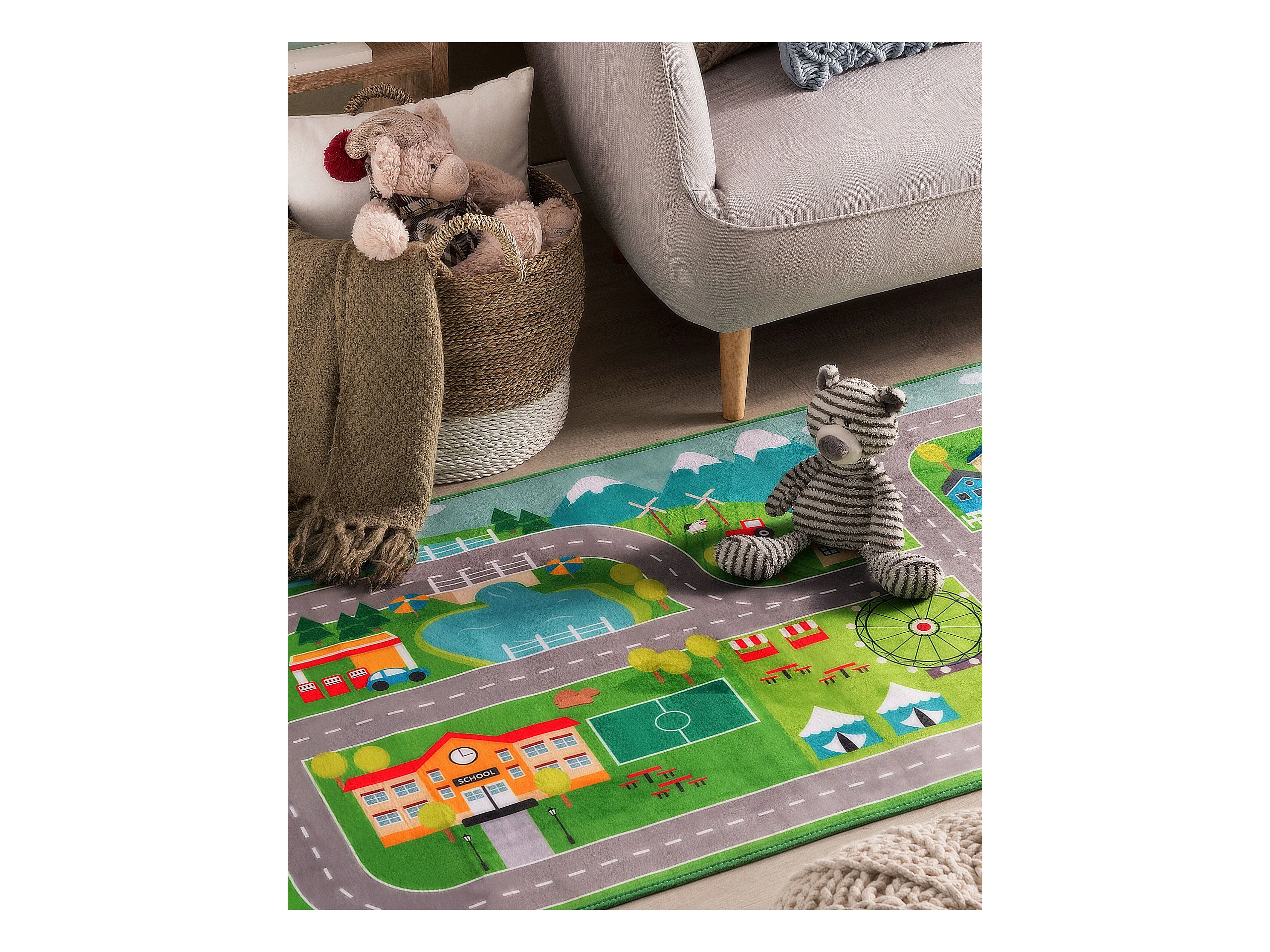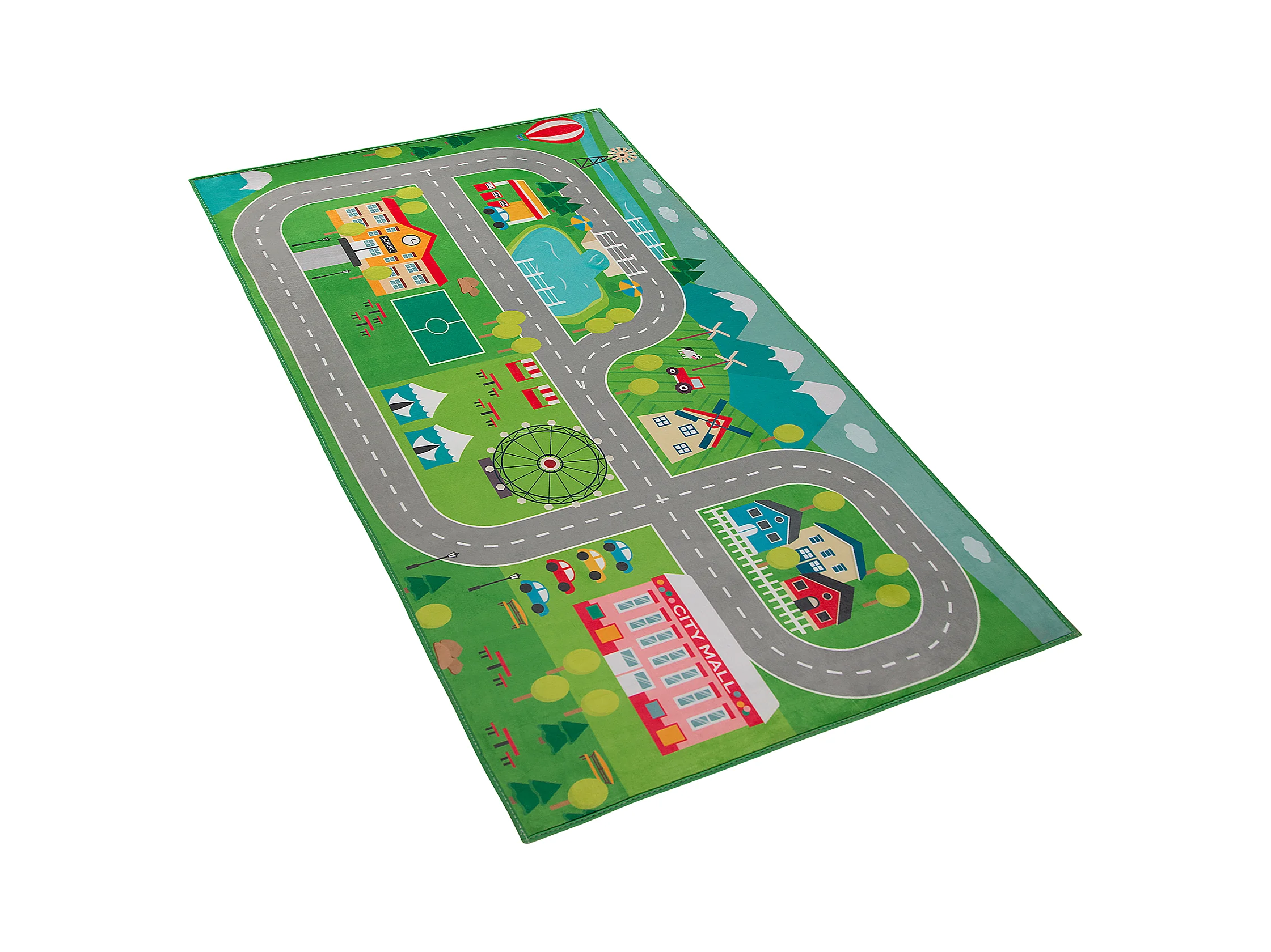Kinderteppich grün 80 x 150 cm Stadt-Motiv Kurzflor SEBEN