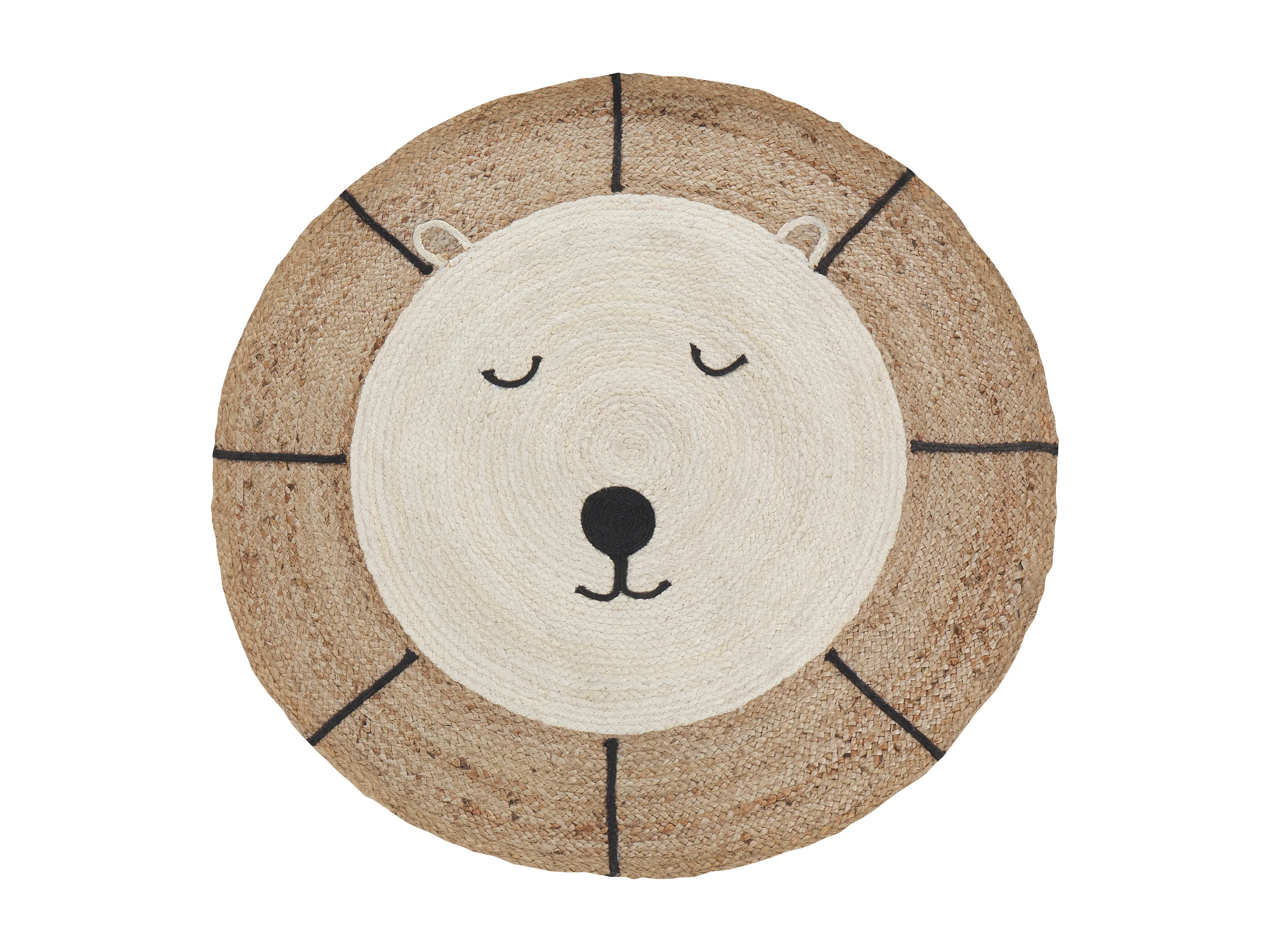 Kinderteppich aus Jute beige Bärenmotiv rund ⌀ 120 cm für Kinderzimmer Kovu