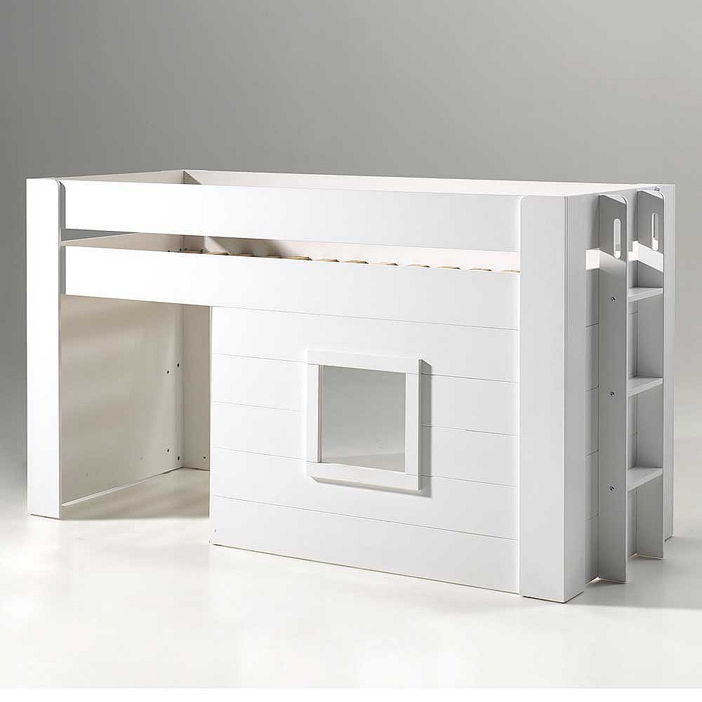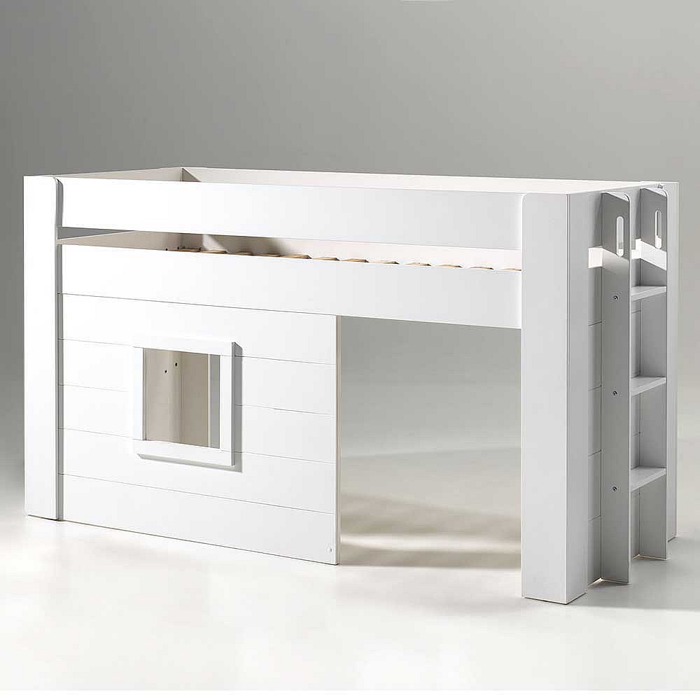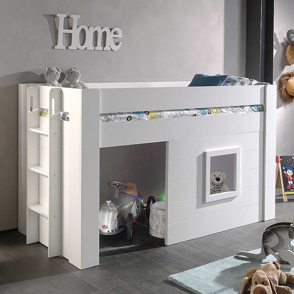 Kinderzimmer Halbhochbett in Weiß Leiter