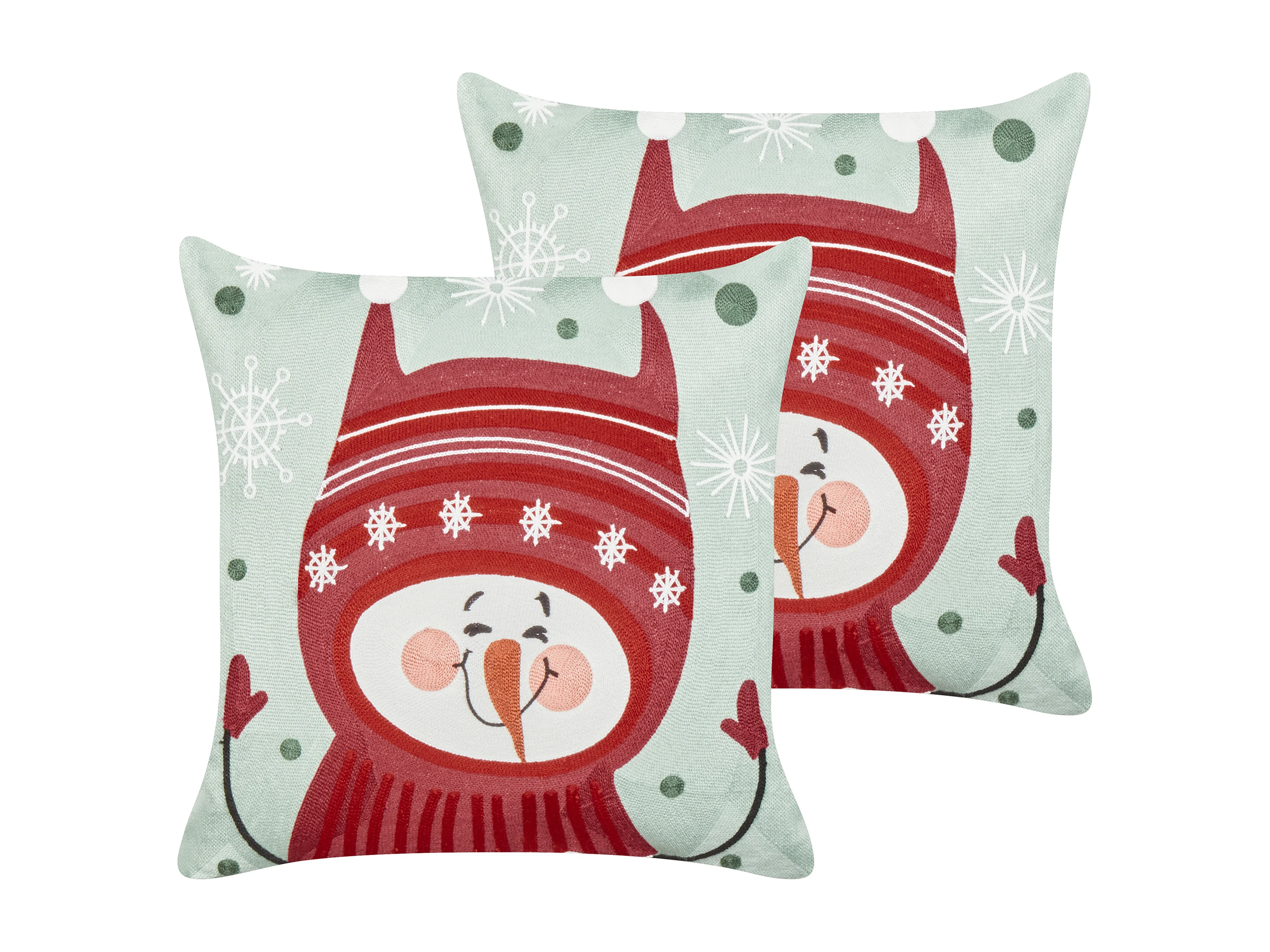 Dekokissen 2er Set Baumwolle grün/rot Weihnachtsmotiv Schneemann 45x45cm Cupcake