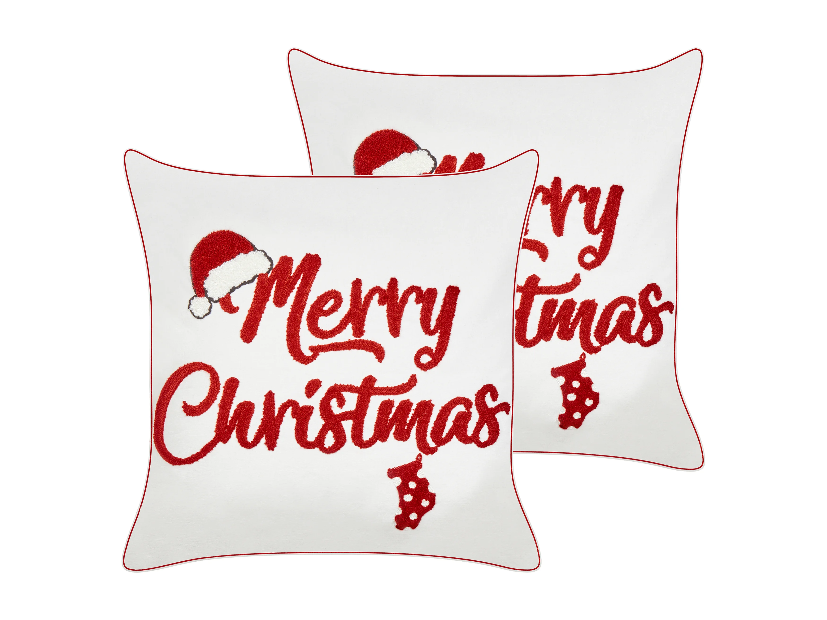 Dekokissen 2er Set Baumwolle creme weiß / rot Weihnachtsmotiv 45x45 cm Pizzelle