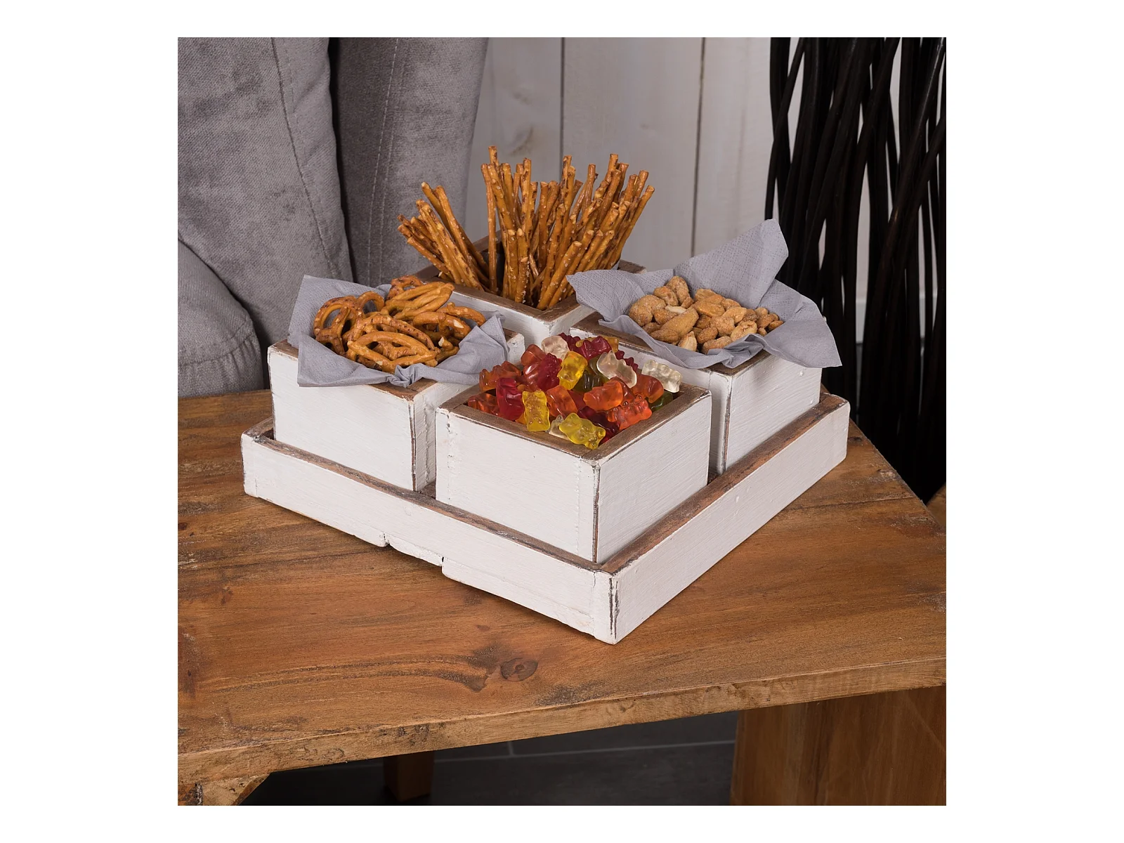 KISTEN-SET Cubo 5-tlg. Massivholz 06 weiß-landhaus