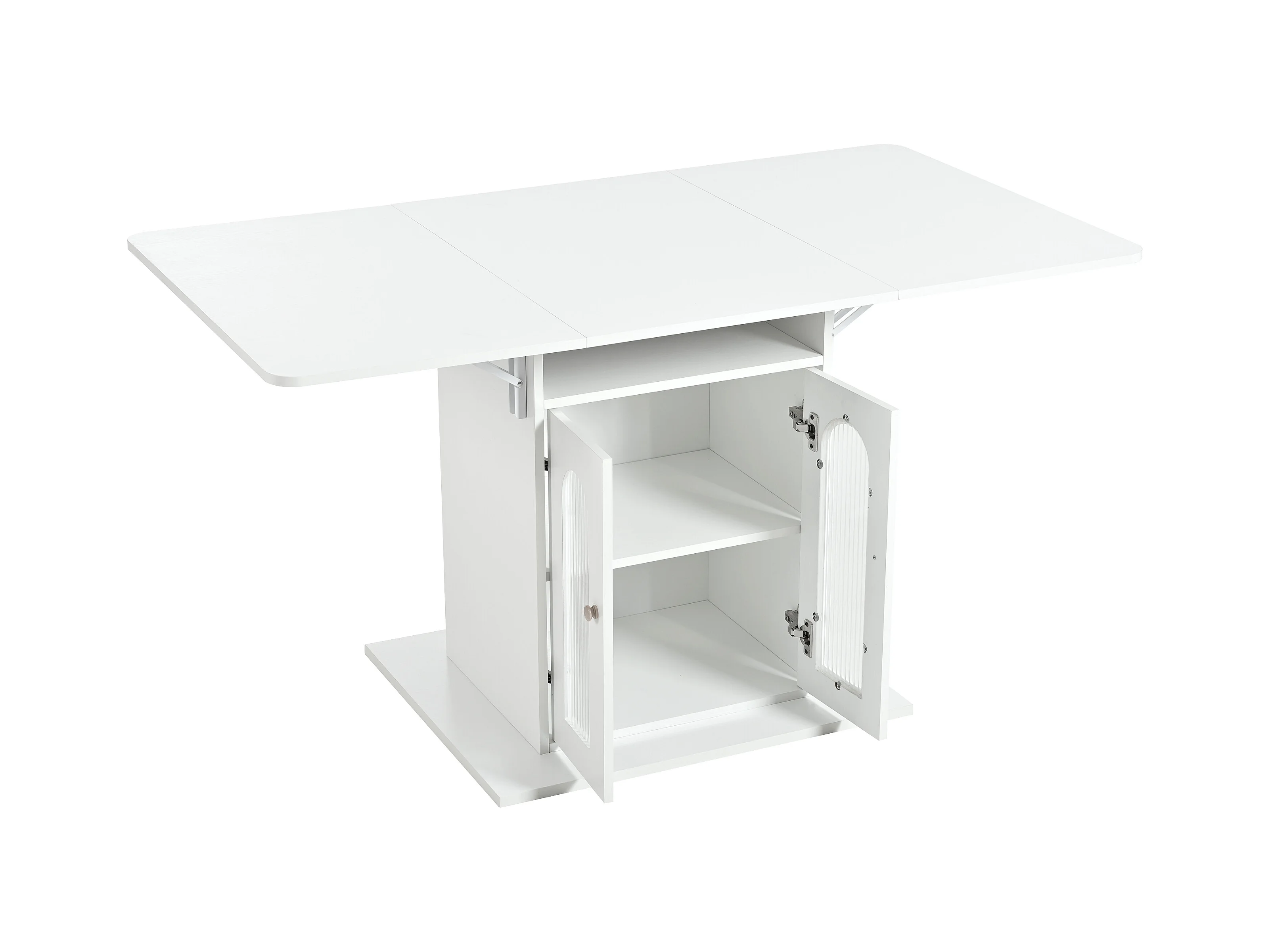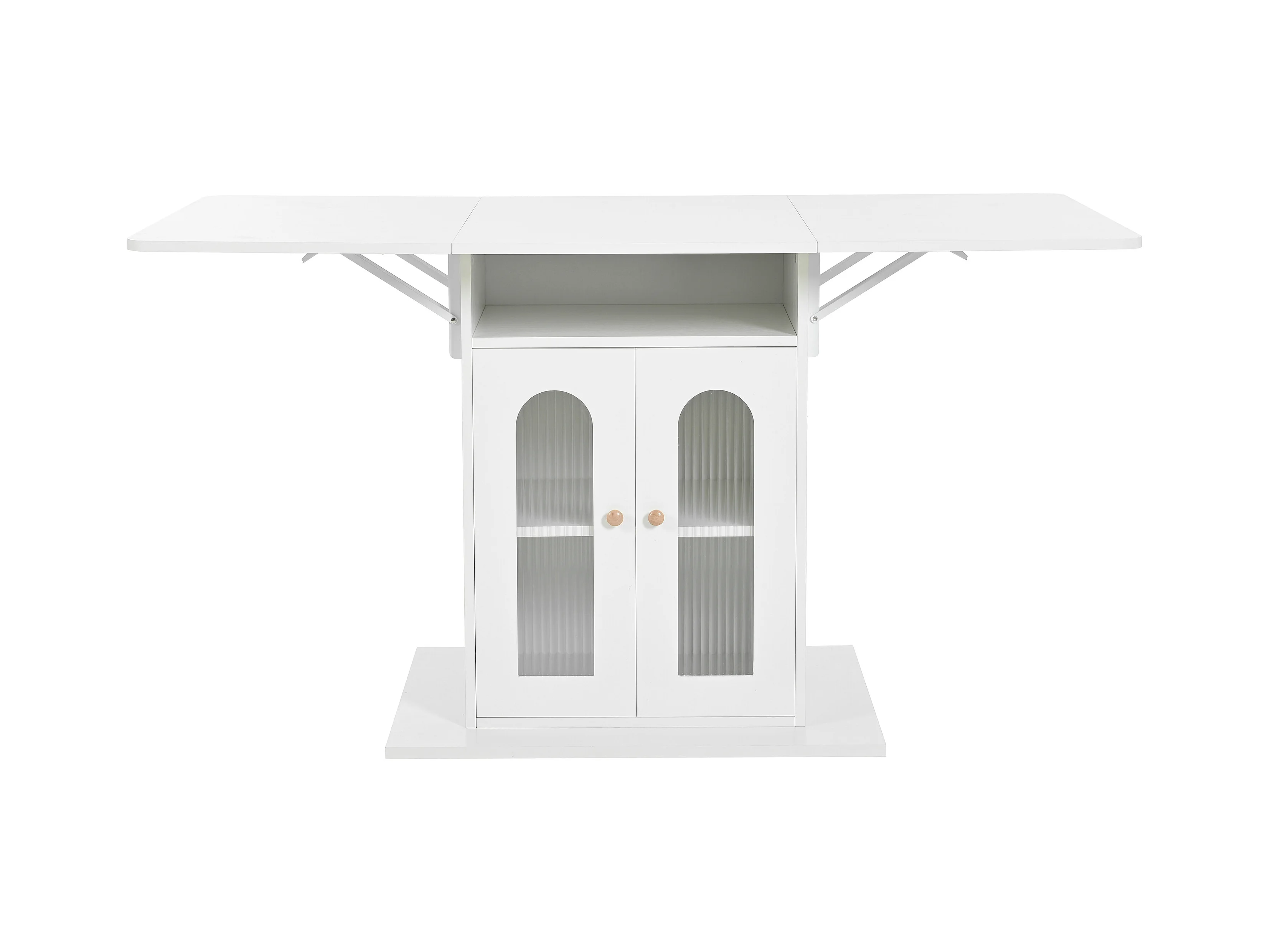 Klappbarer Esstisch mit 2 Türen und 1 Nische - 50/140 x 78 x 75,6 cm - LEDs - MDF-Holz - Weiß