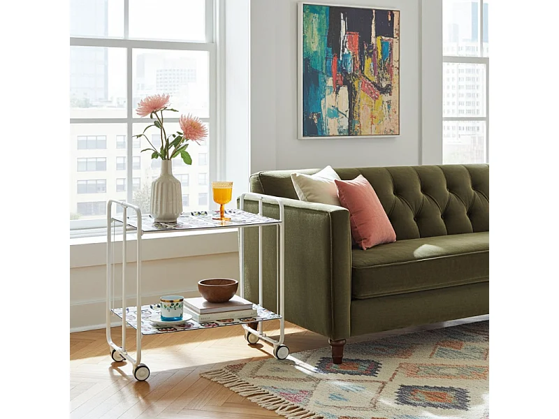 Klappbarer Servierwagen BAUHAUS mit Rollen – Metallgestell weiß, 2 Ebenen, 4 Positionen