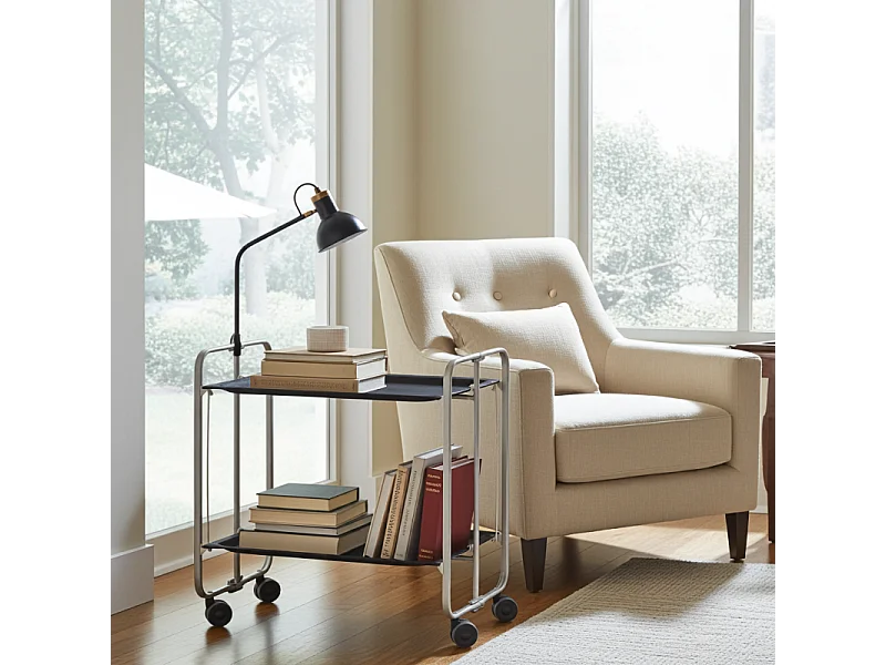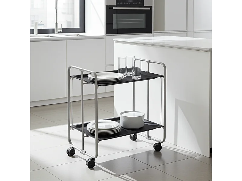 Klappbarer Servierwagen mit Rädern - Grauer Metallrahmen, 2 schwarz laminierte Etagen - 72*66*43 cm - BAUHAUS