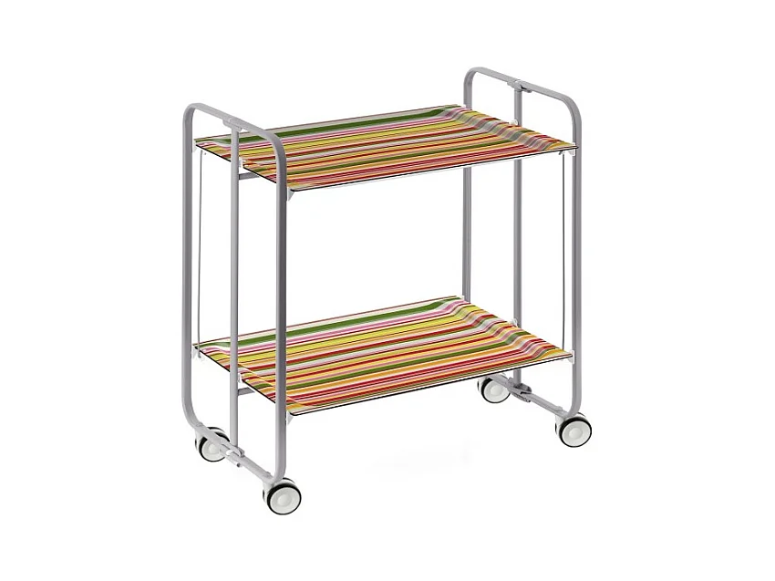 Klappbarer Wagen mit Rädern - Graues Metallgestell, 2 Etagen laminiert, gestreiftes Dekor - 72*66*43 cm - BAUHAUS