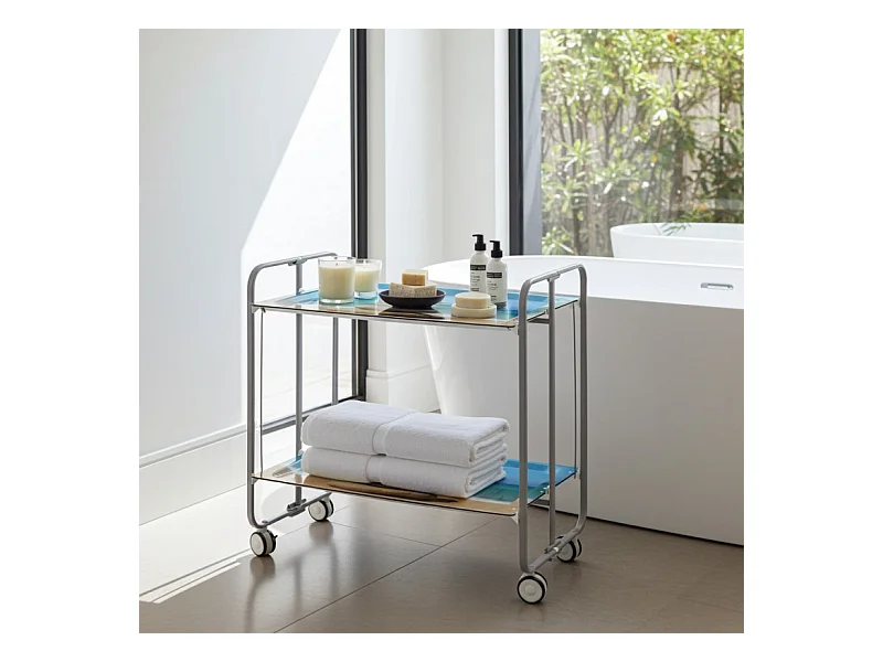Klappbarer Wagen mit Rädern - Graues Metallgestell, 2 laminierte Etagen - Strand Design - 72*66*43 cm - BAUHAUS