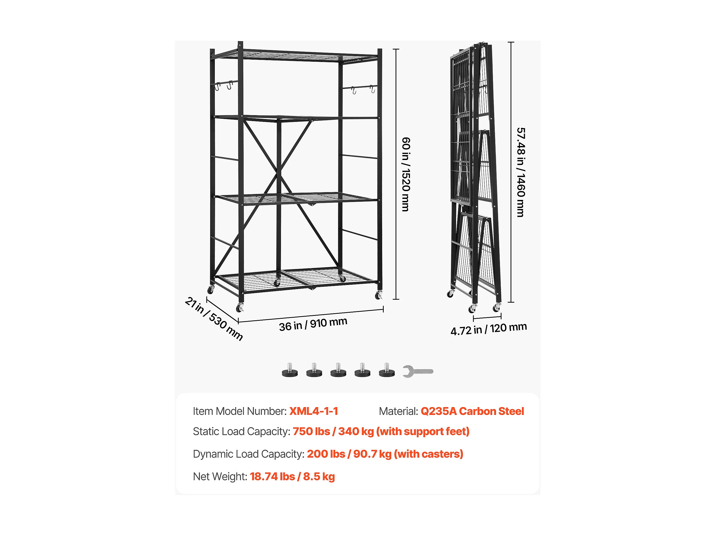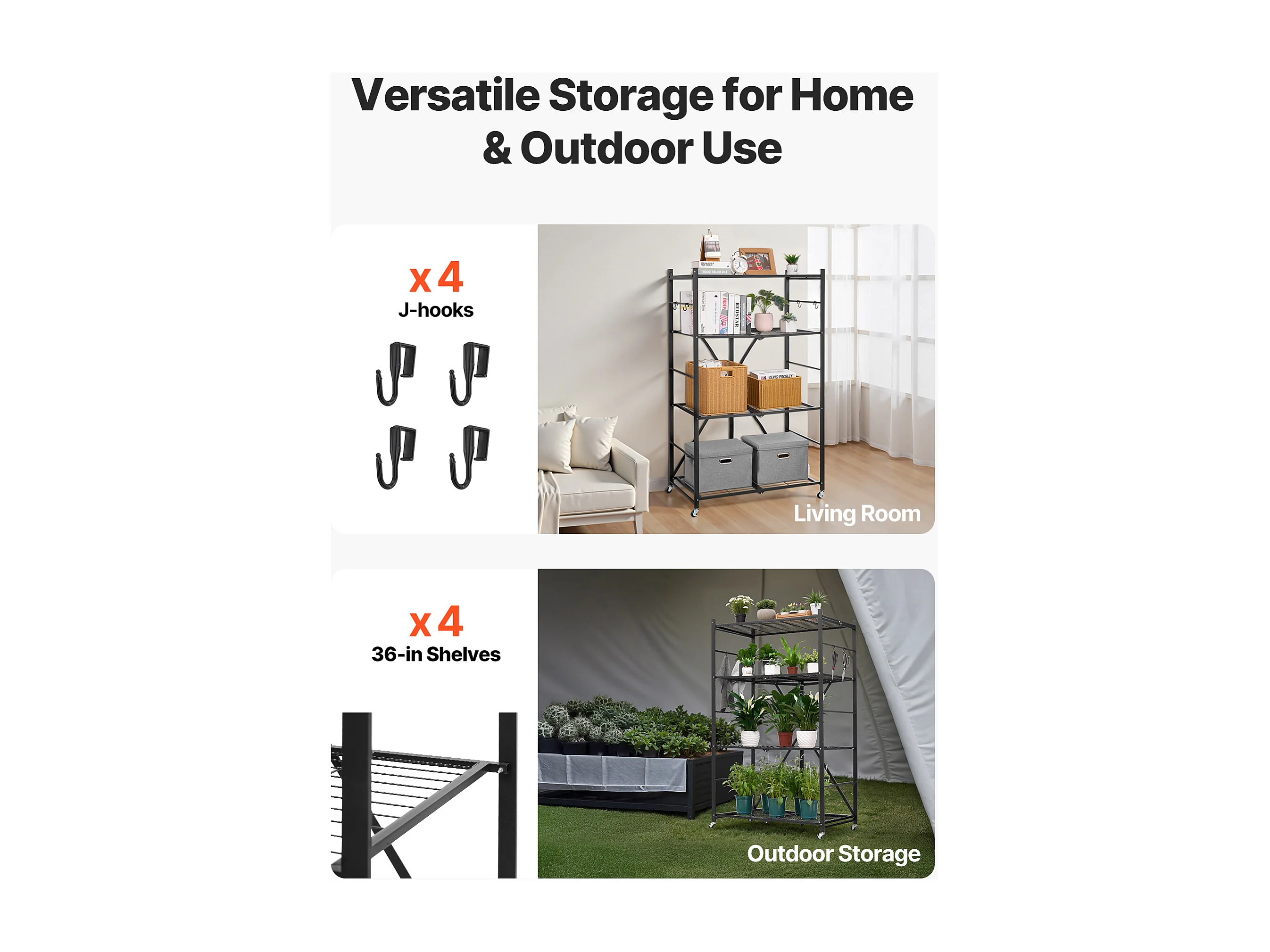 Klappbares Regal SucceBuy 4-stöckiges Klappregal, 91 x 53 x 152 cm, Stabler Metallrahmen, Statische Tragkraft von 340 kg und Dynamische Tragkraft von 90,7 kg