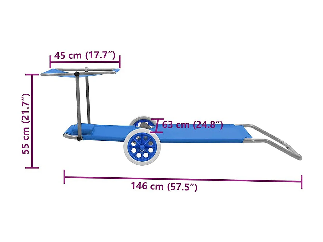 Klappliege mit Sonnenschutz und Rädern Stahl Blau