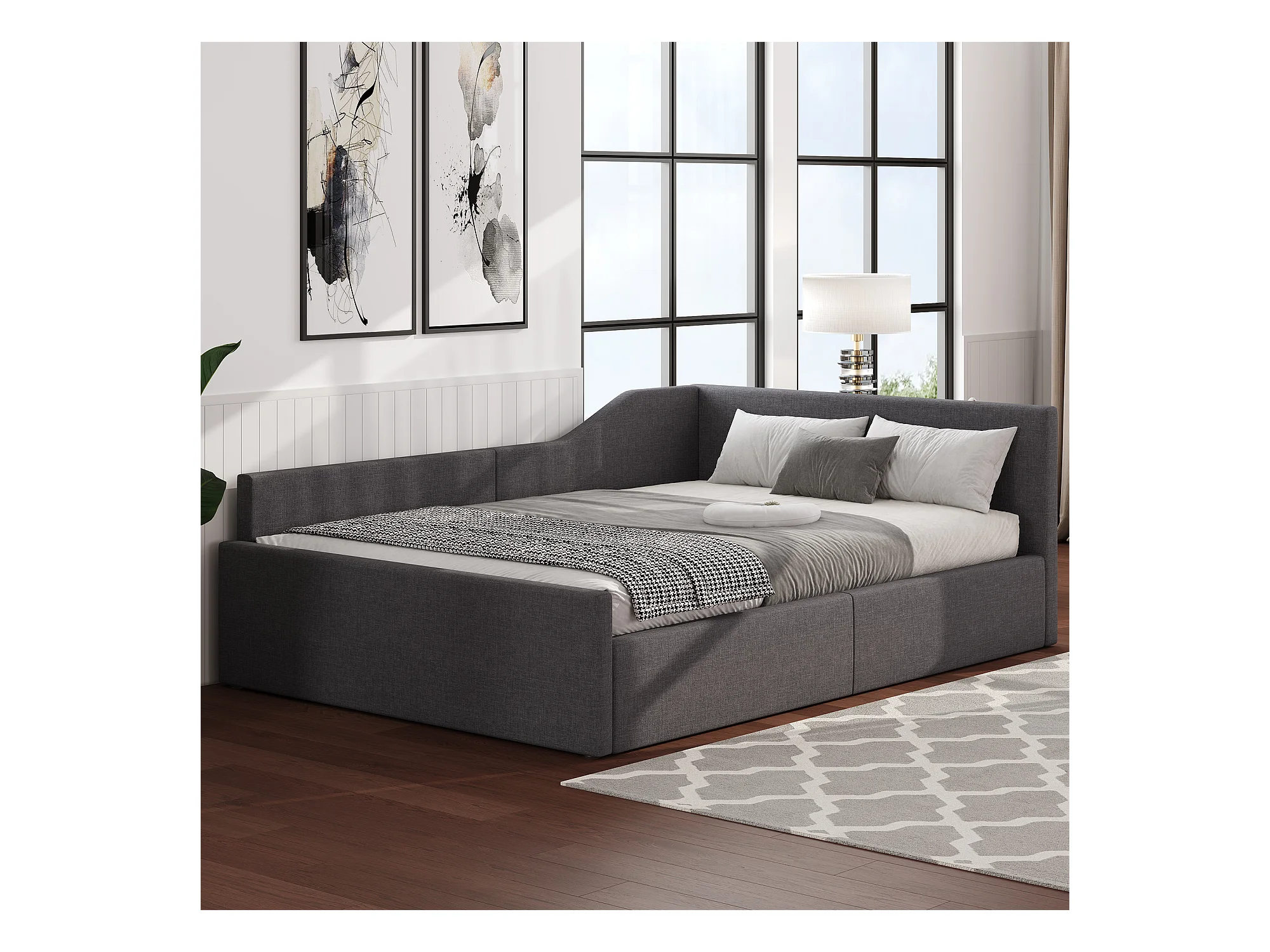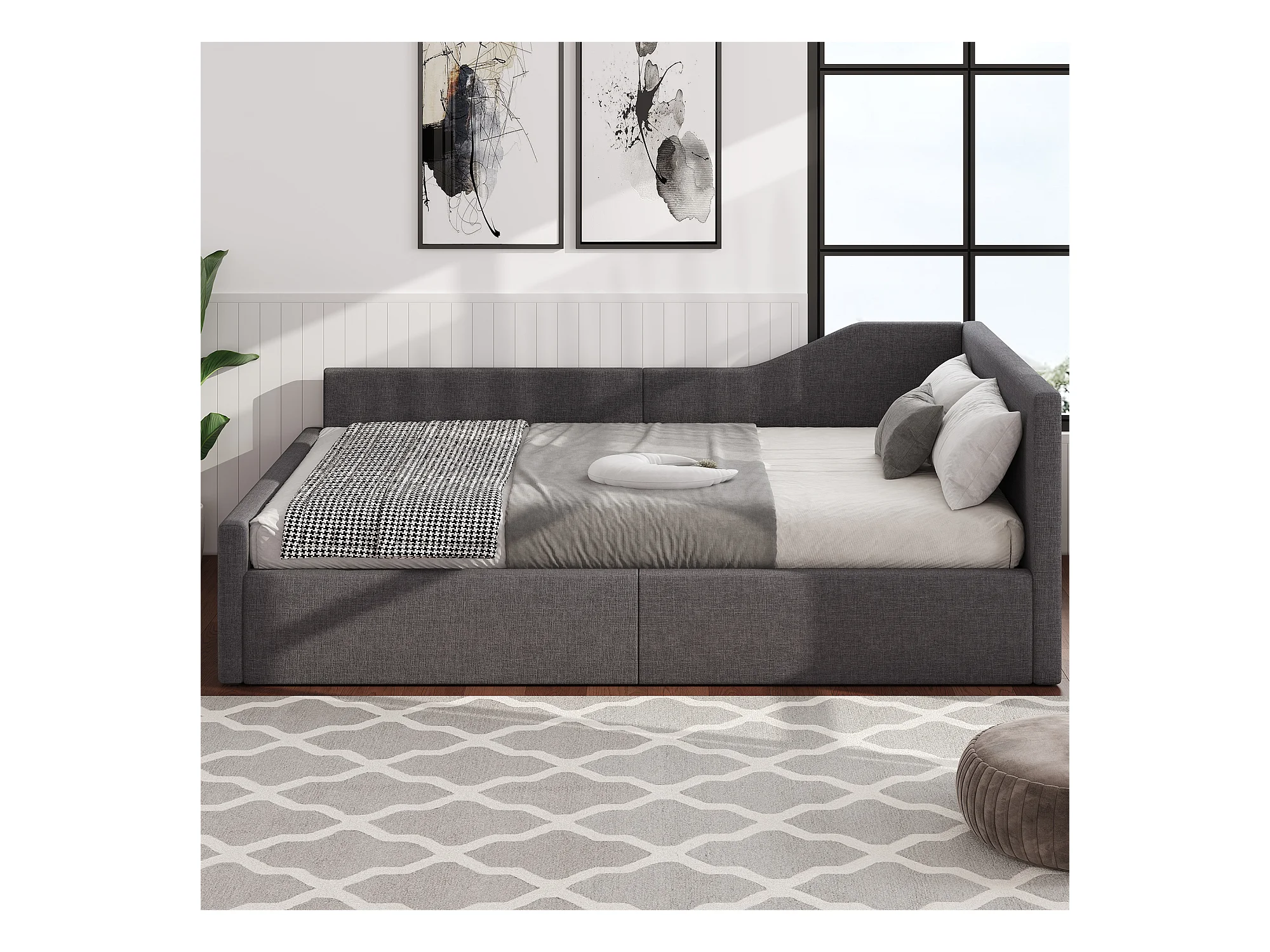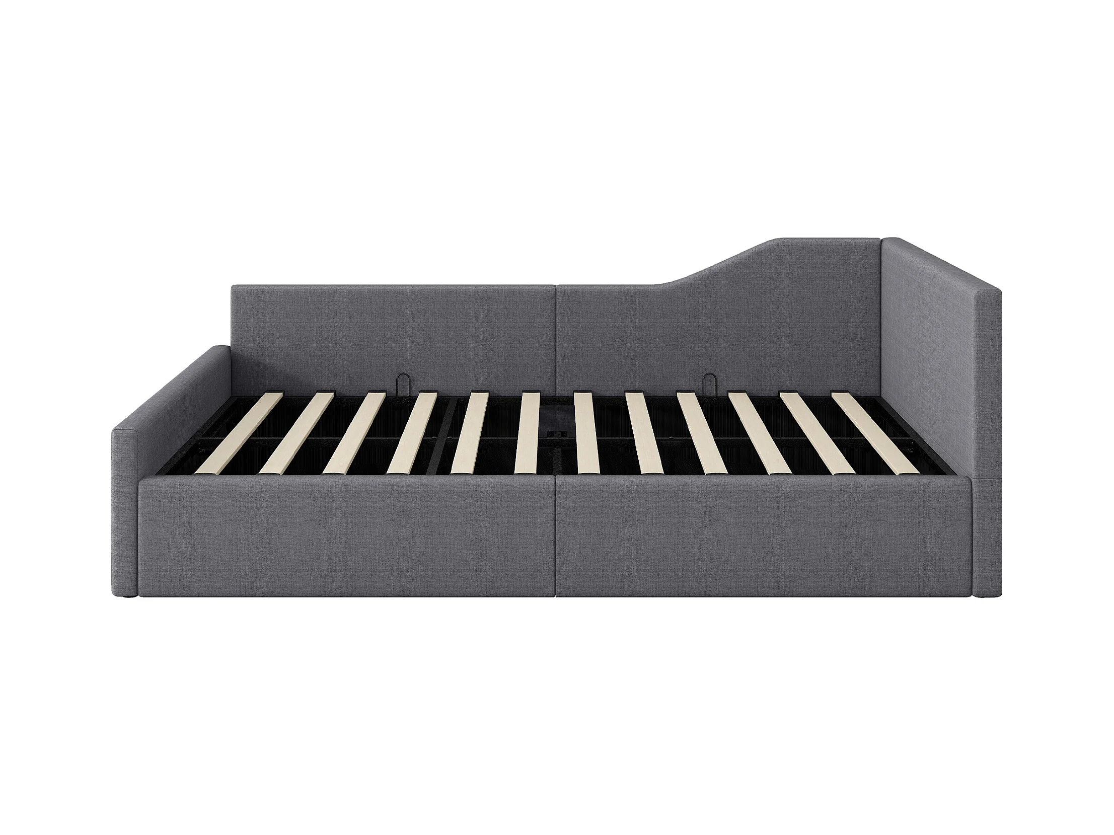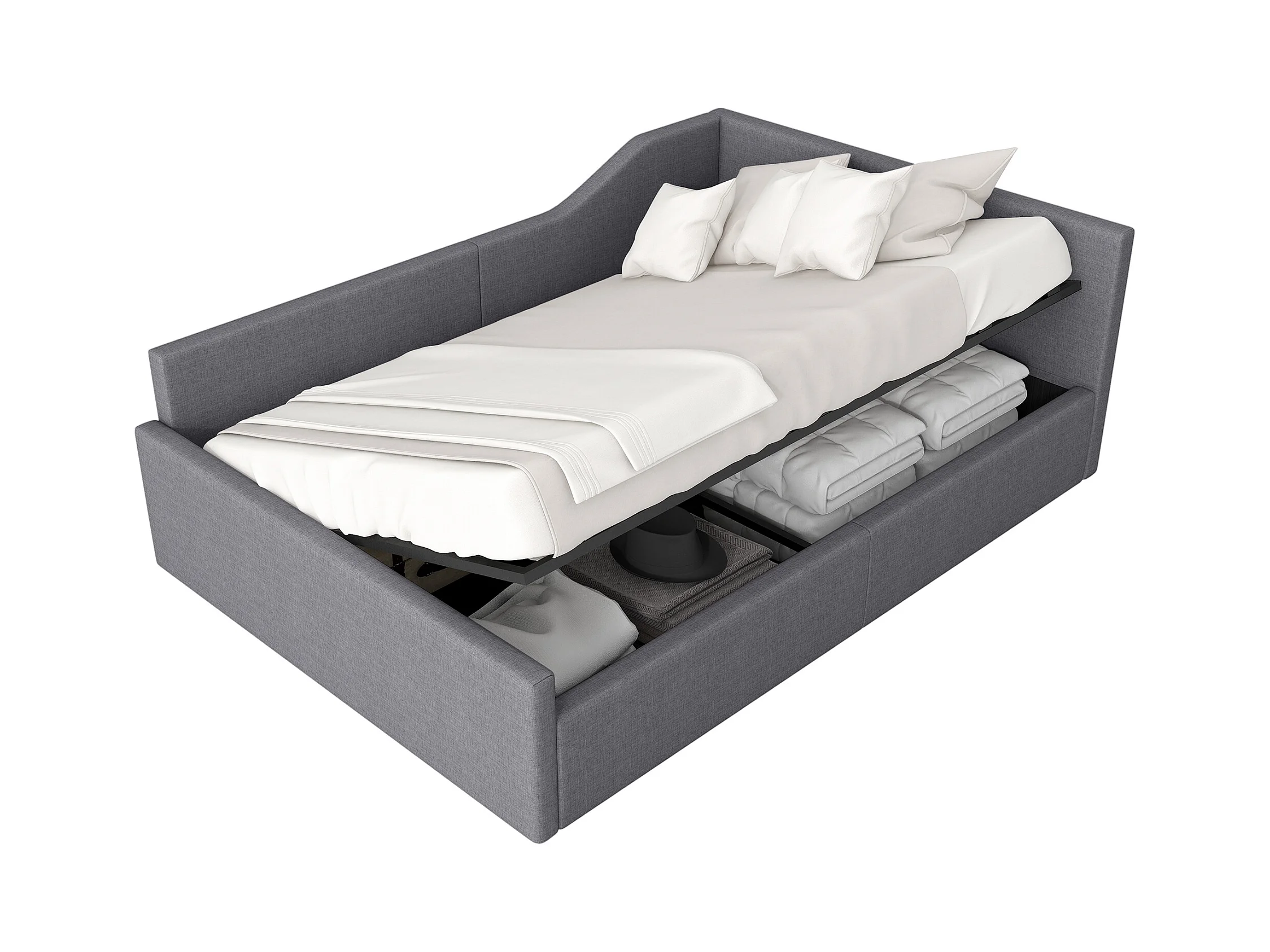 Klappsofa mit Polsterung 140×200 cm - mit Stauraum - mit Lattenrost - MDF+Leinen - grau