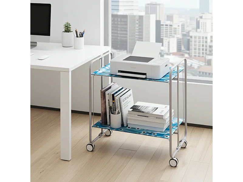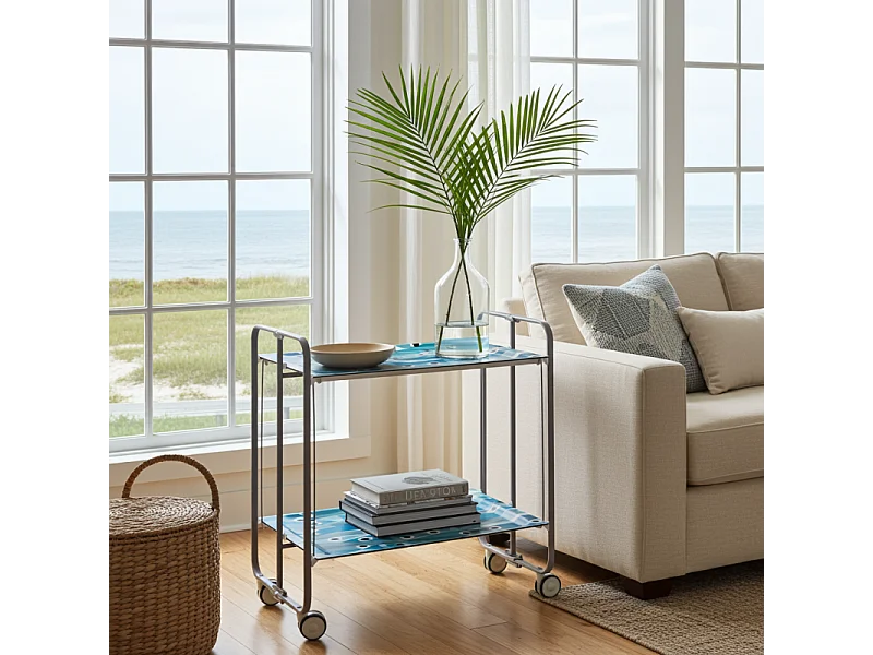 Klappwagen mit Rädern - Graues Metallgestell, 2 laminierte Ablagen Blauer Fisch Dekor - 72*66*43 cm - BAUHAUS