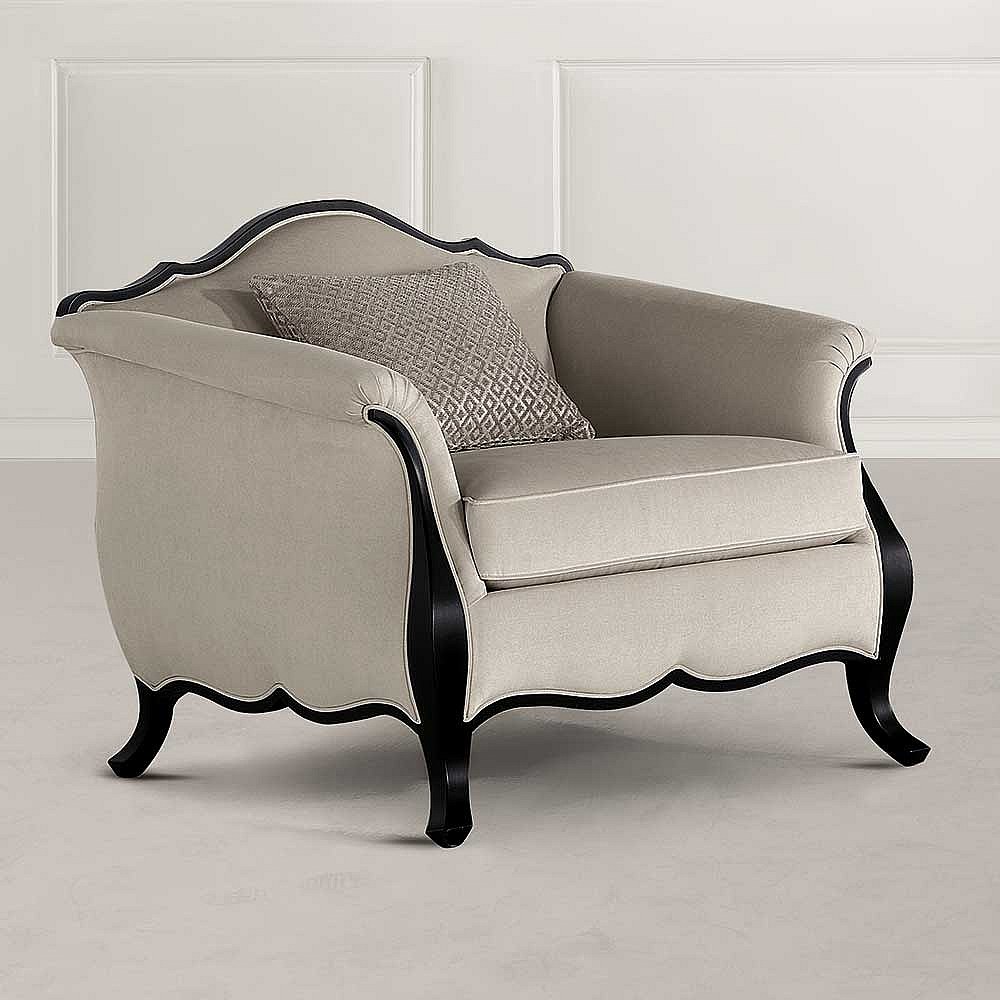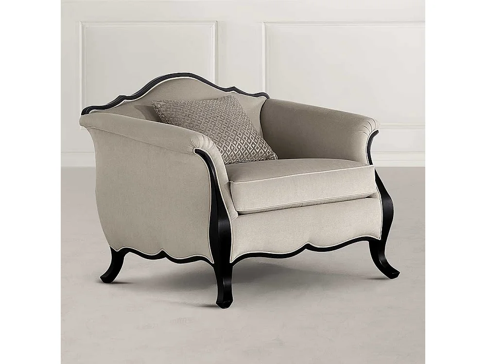 Klassischer Einzelsessel in Beige und Schwarz Vierfußgestell aus Holz