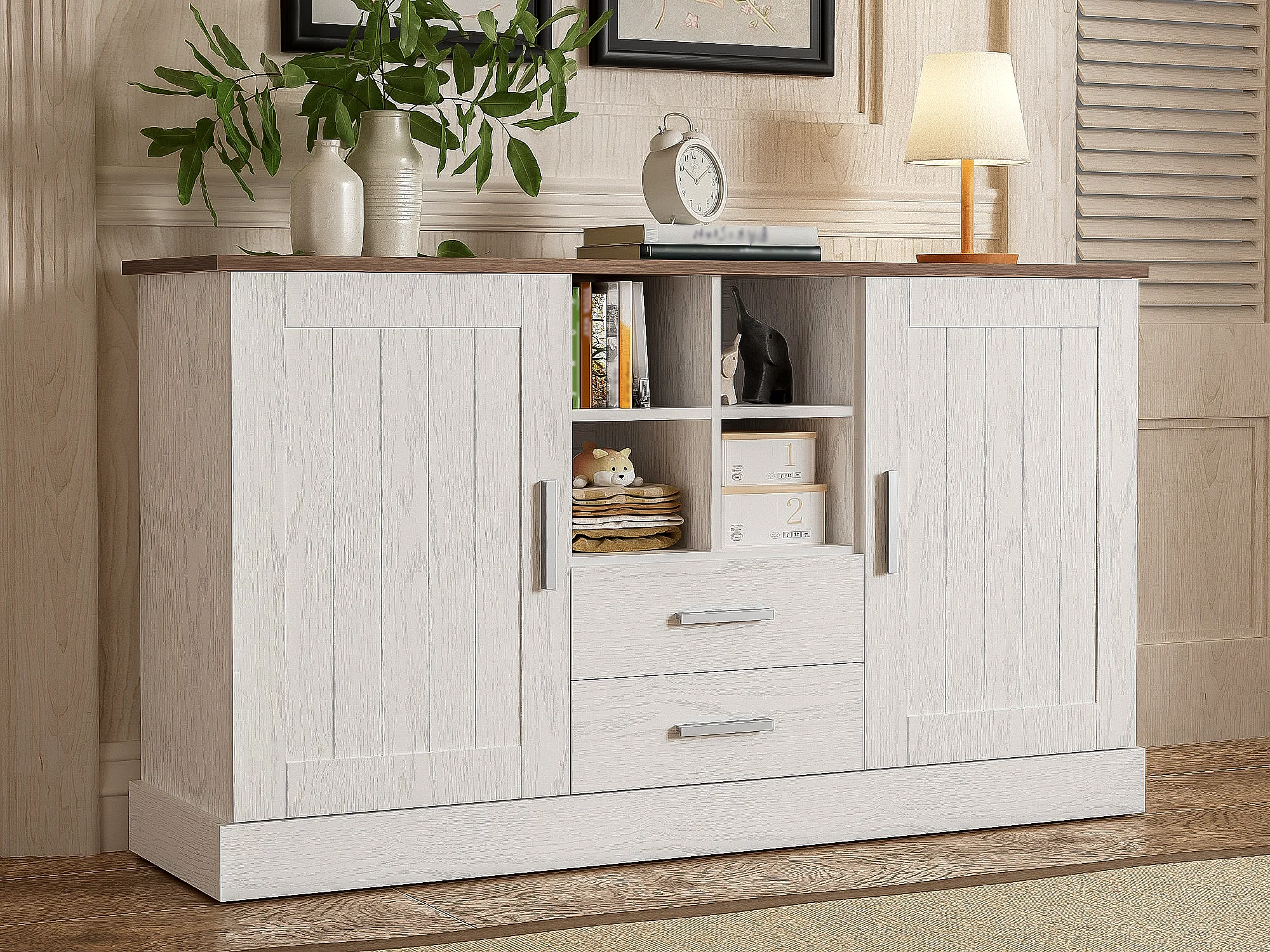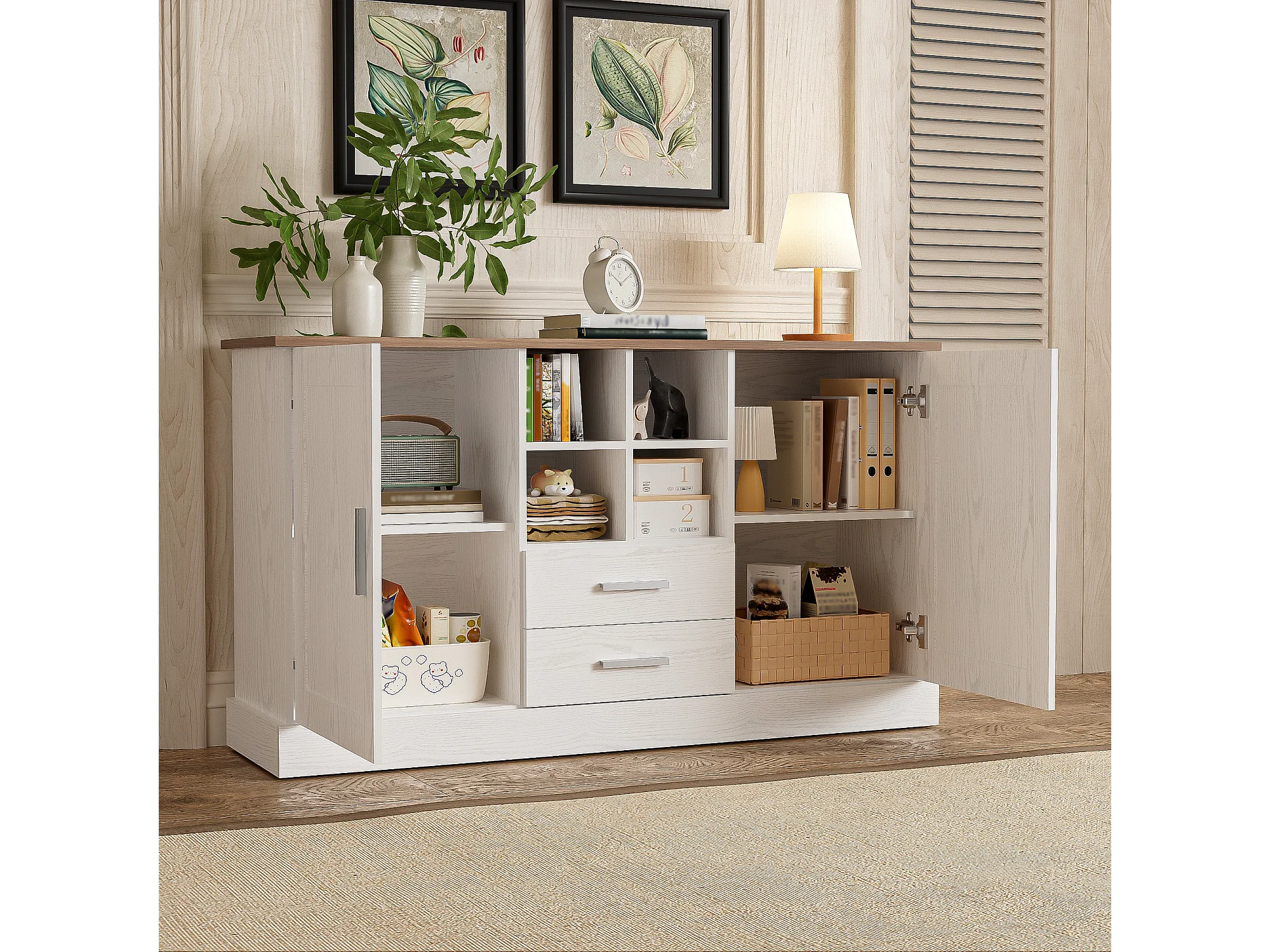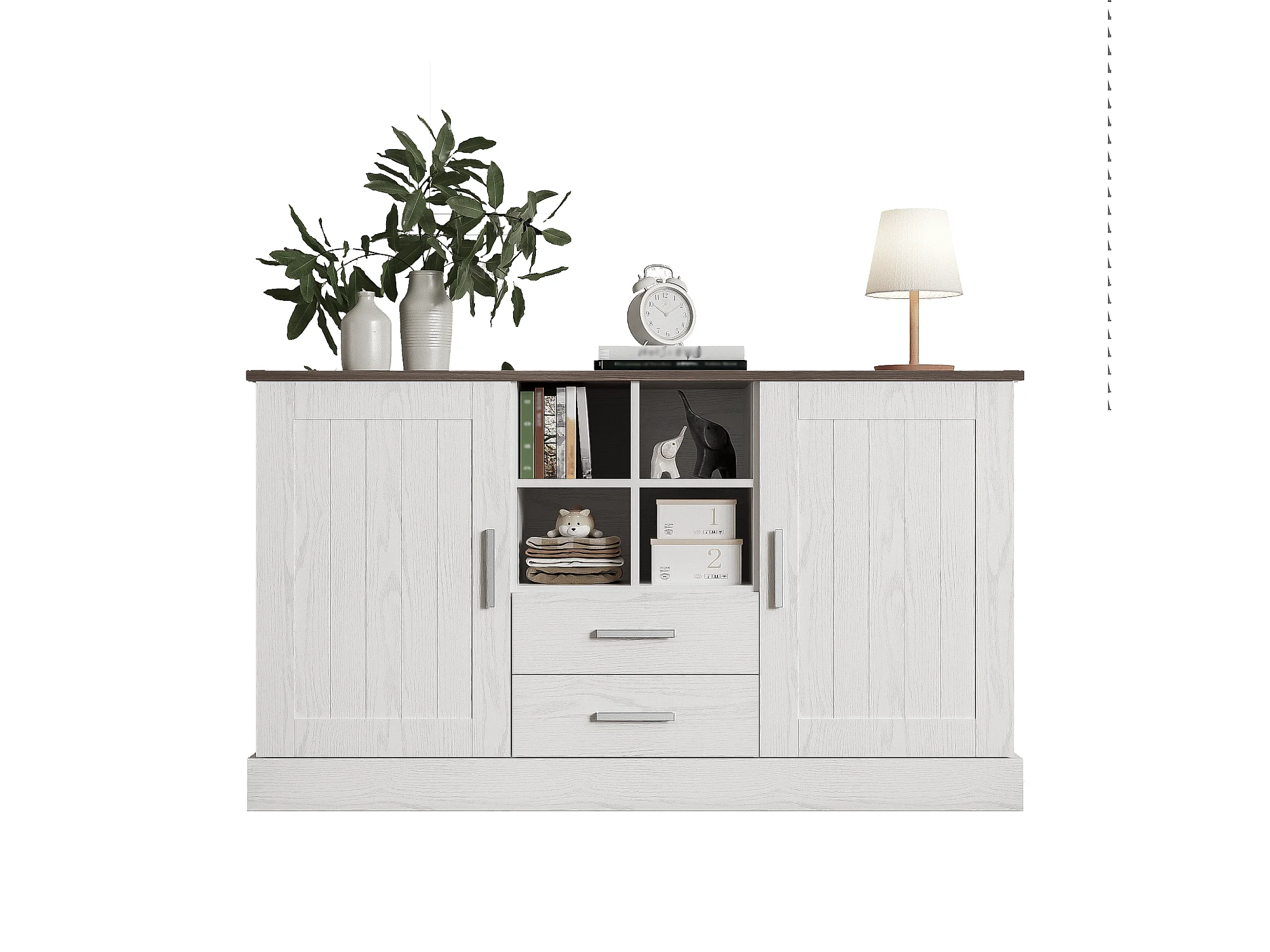 Klassisches Sideboard – mit 2 Türen, 2 Schubladen und 4 Fächern – Weiß