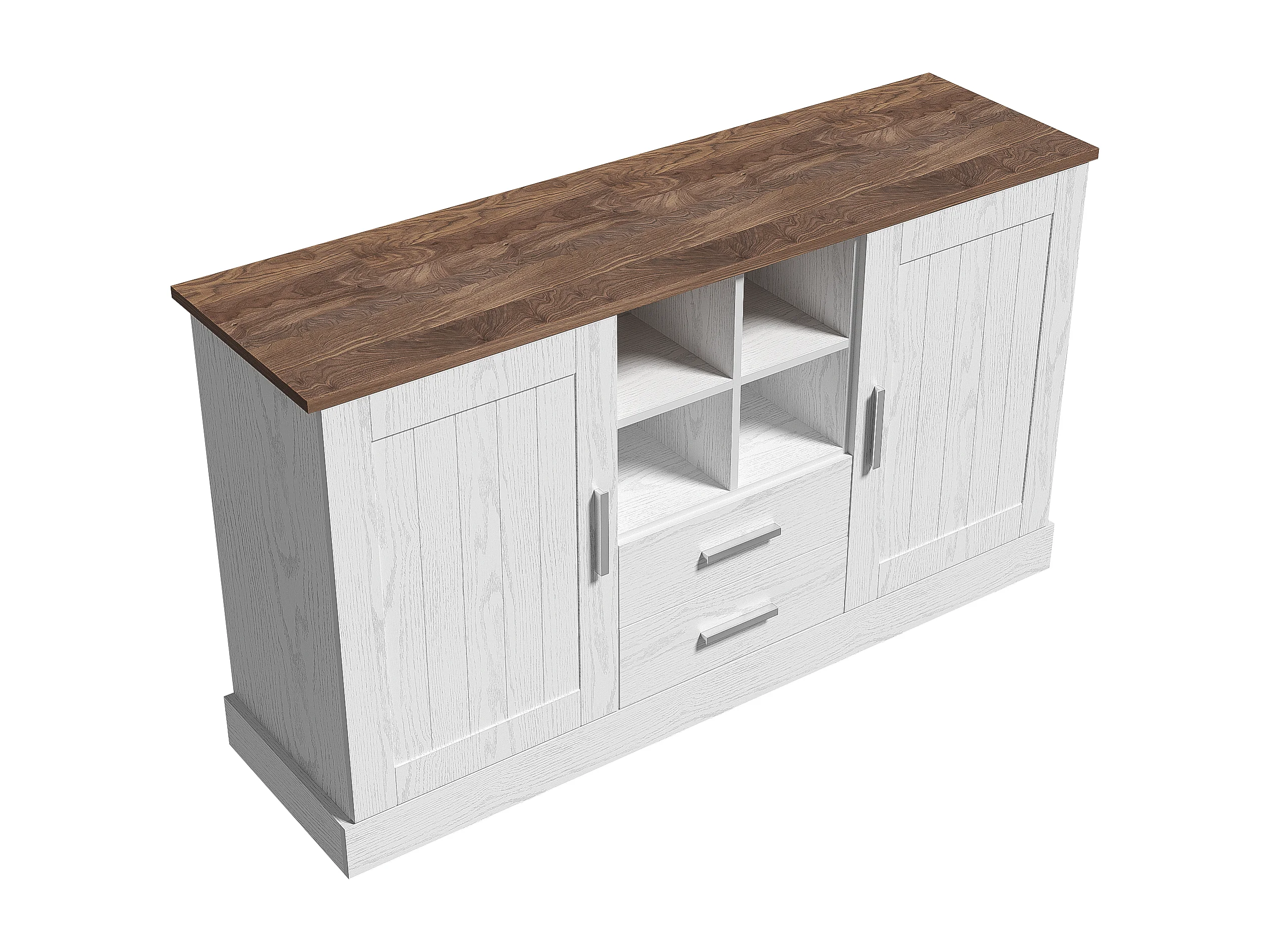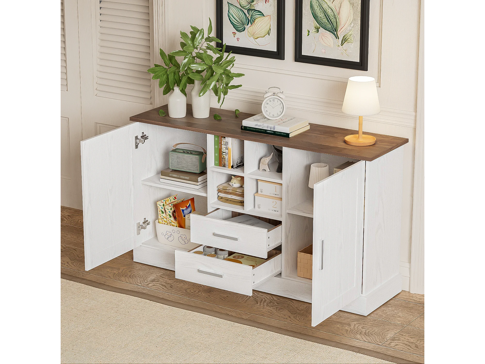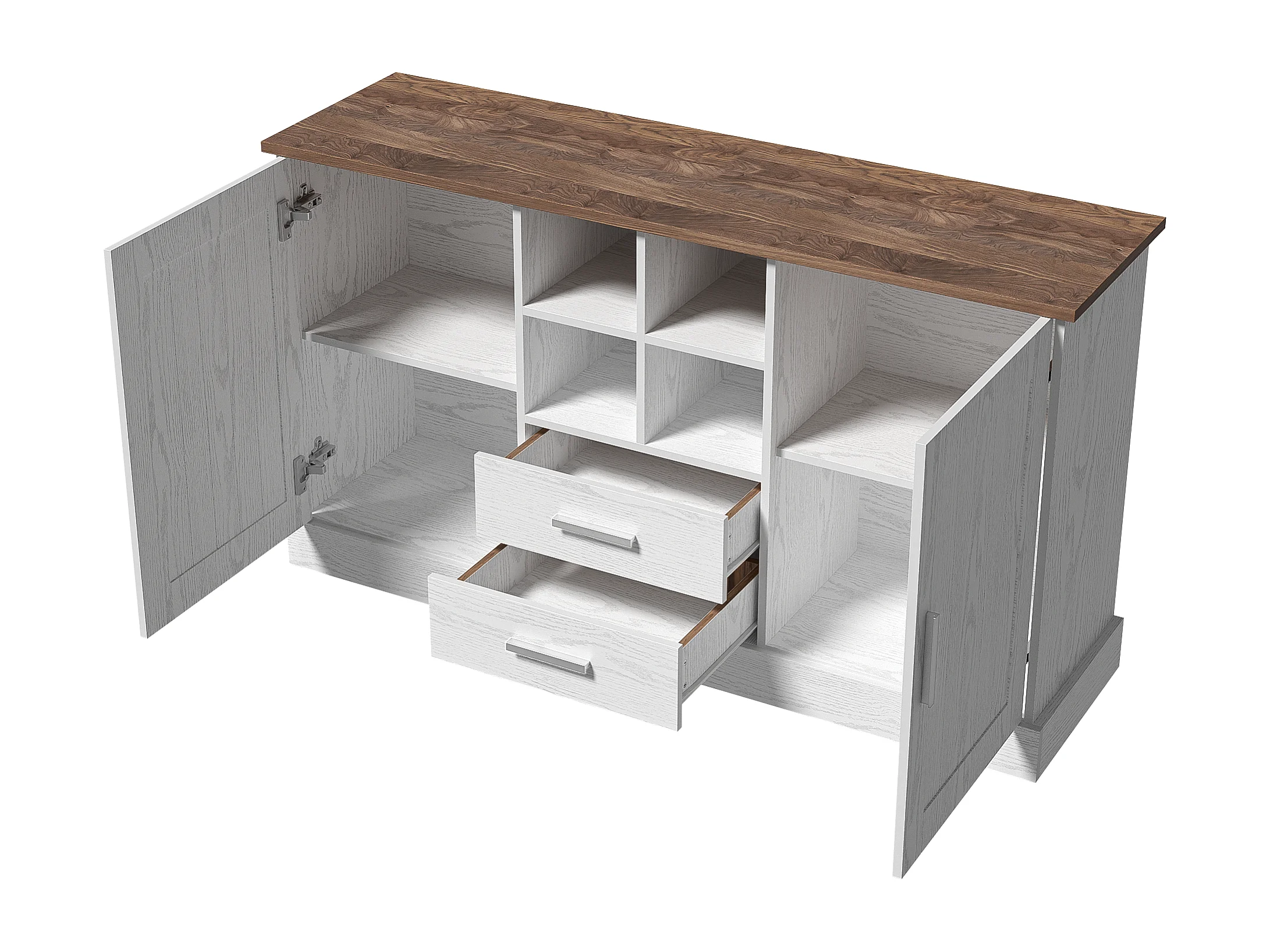 Klassisches Sideboard – mit 2 Türen, 2 Schubladen und 4 Fächern – Weiß