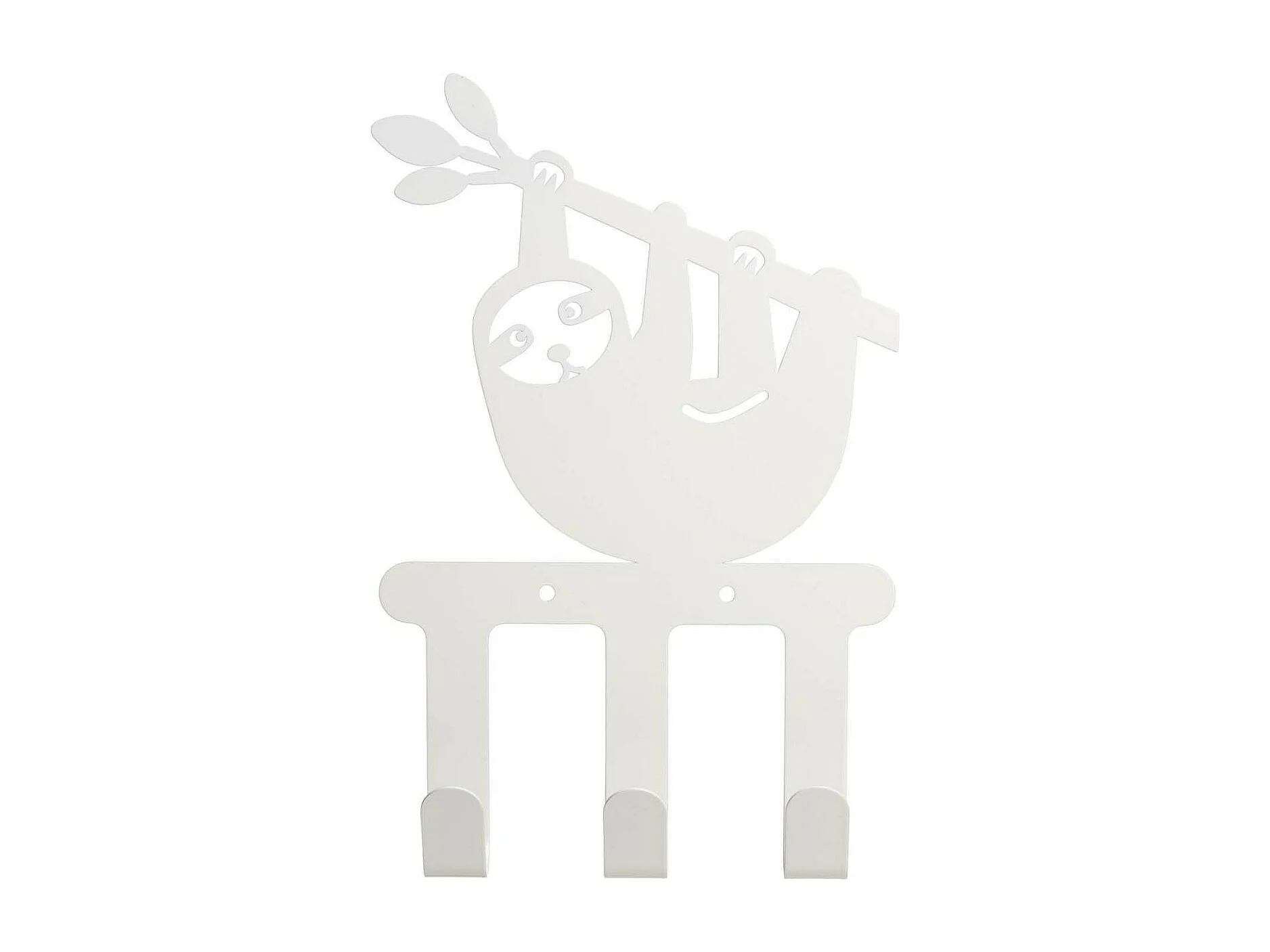 Kleiderhaken für Kinder aus Metall 3 Haken Faultier weiß