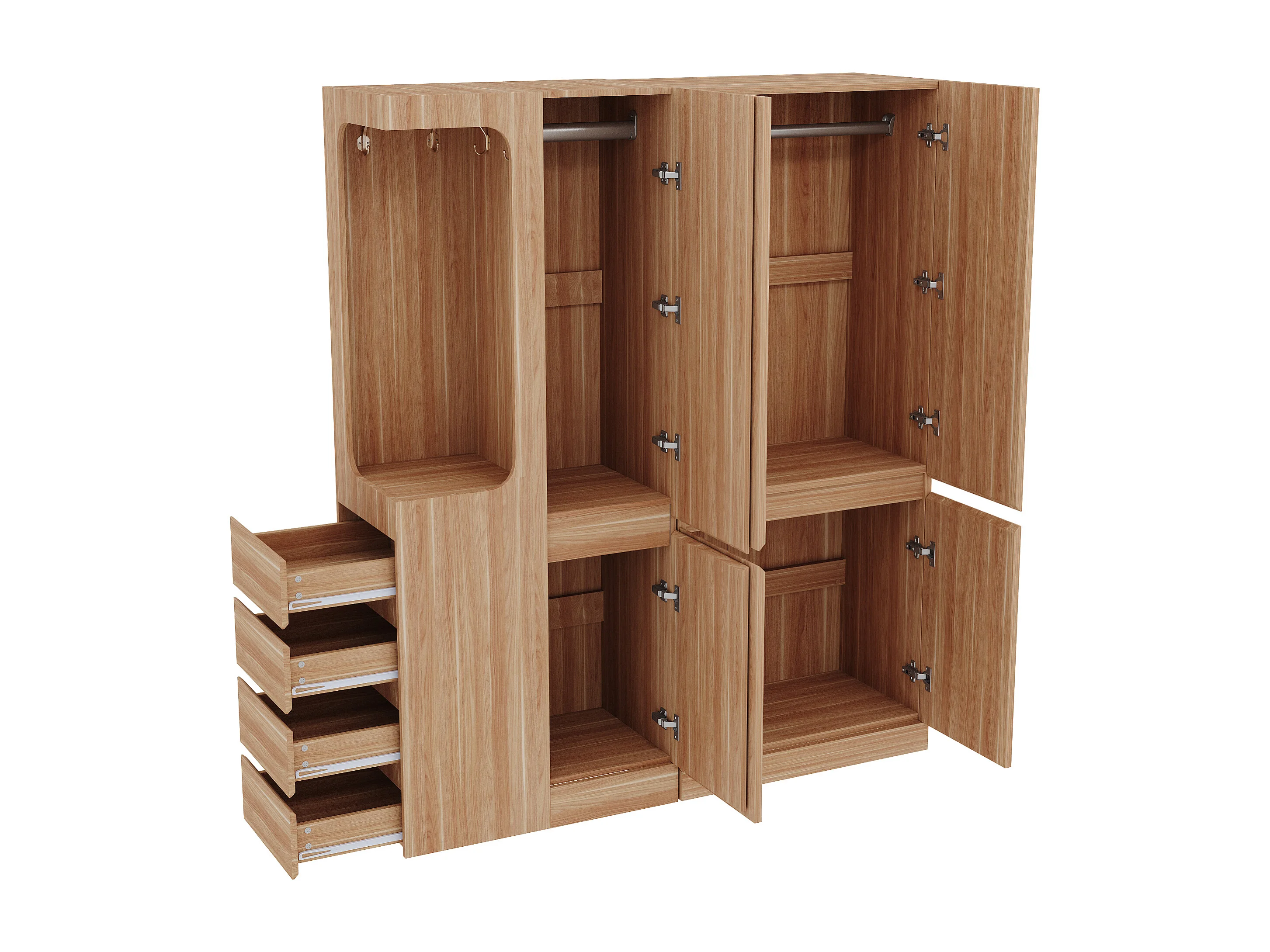 Kleiderschrank 140x40x170 cm - mit 4 Schubladen - mit Staufächern - mit Türen - Natur