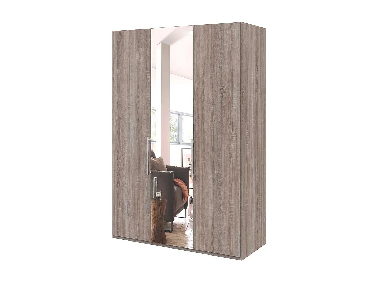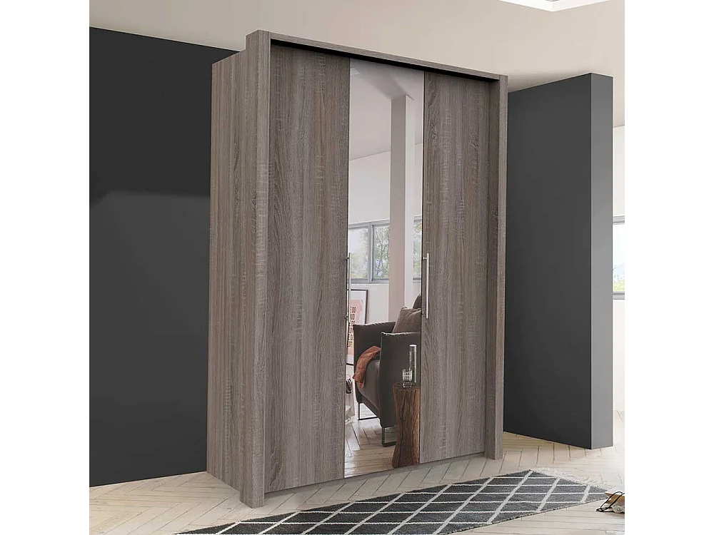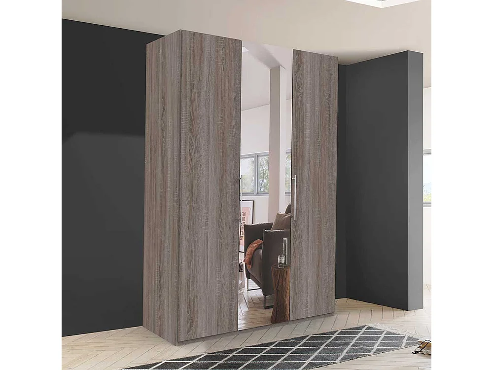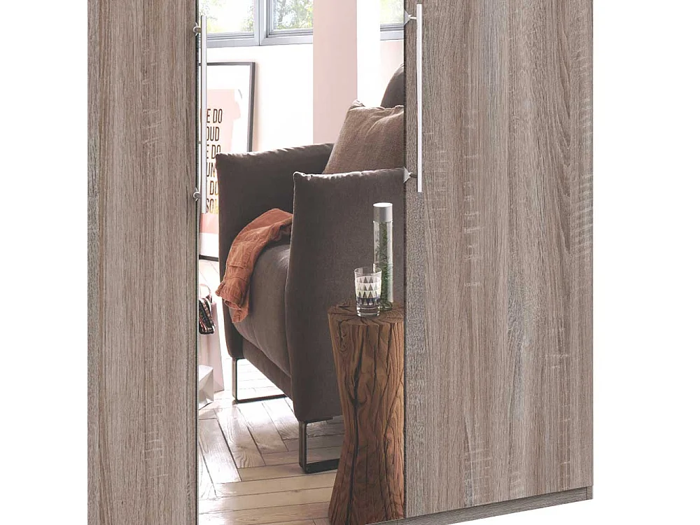 Kleiderschrank 2 türig mit Spiegel Eiche Trüffelfarben
