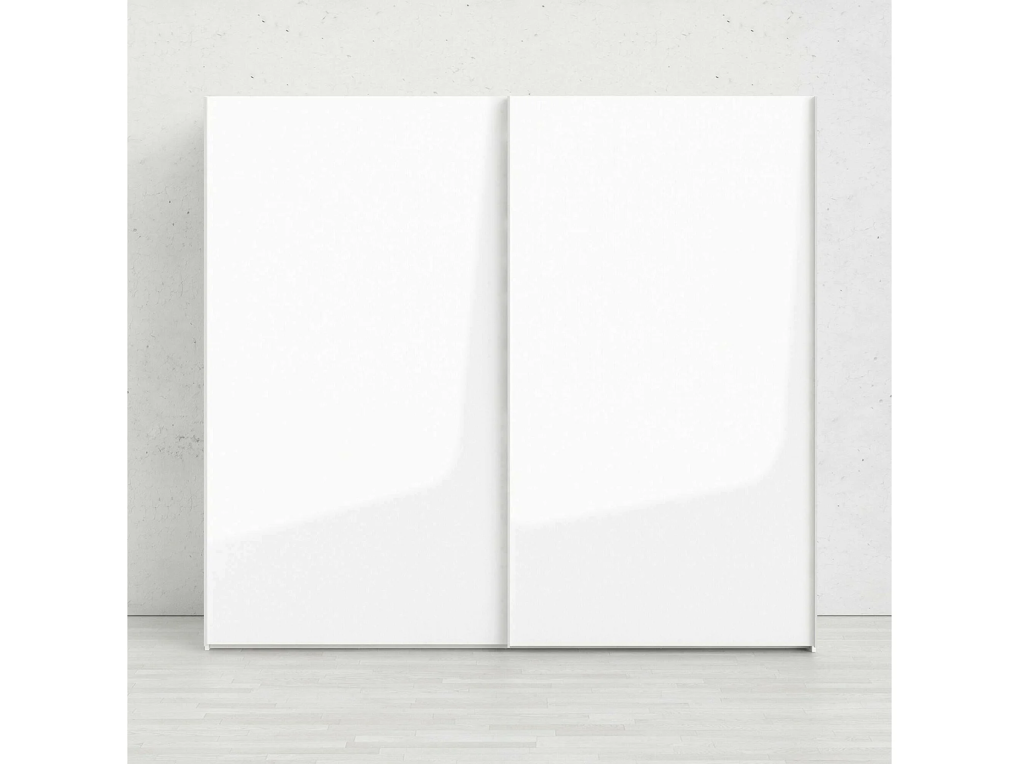 Kleiderschrank 2 Türen Badesse, Schlafzimmermöbel, Schrank, Garderobe, 243x61 h220 cm, Glänzendes Weiß