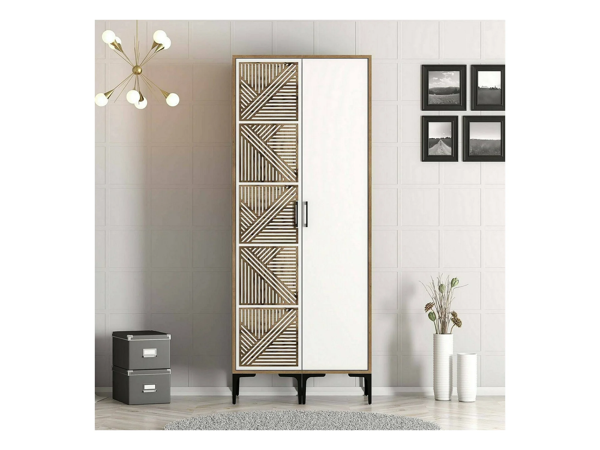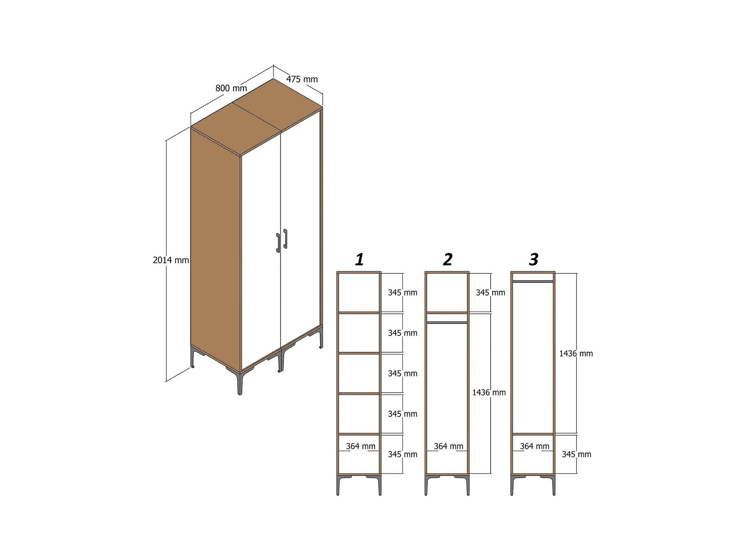 Kleiderschrank 2 Türen Dbenkovi, Schlafzimmermöbel, Schrank, Garderobe, 80x201h48 cm, Walnuss und Weiß