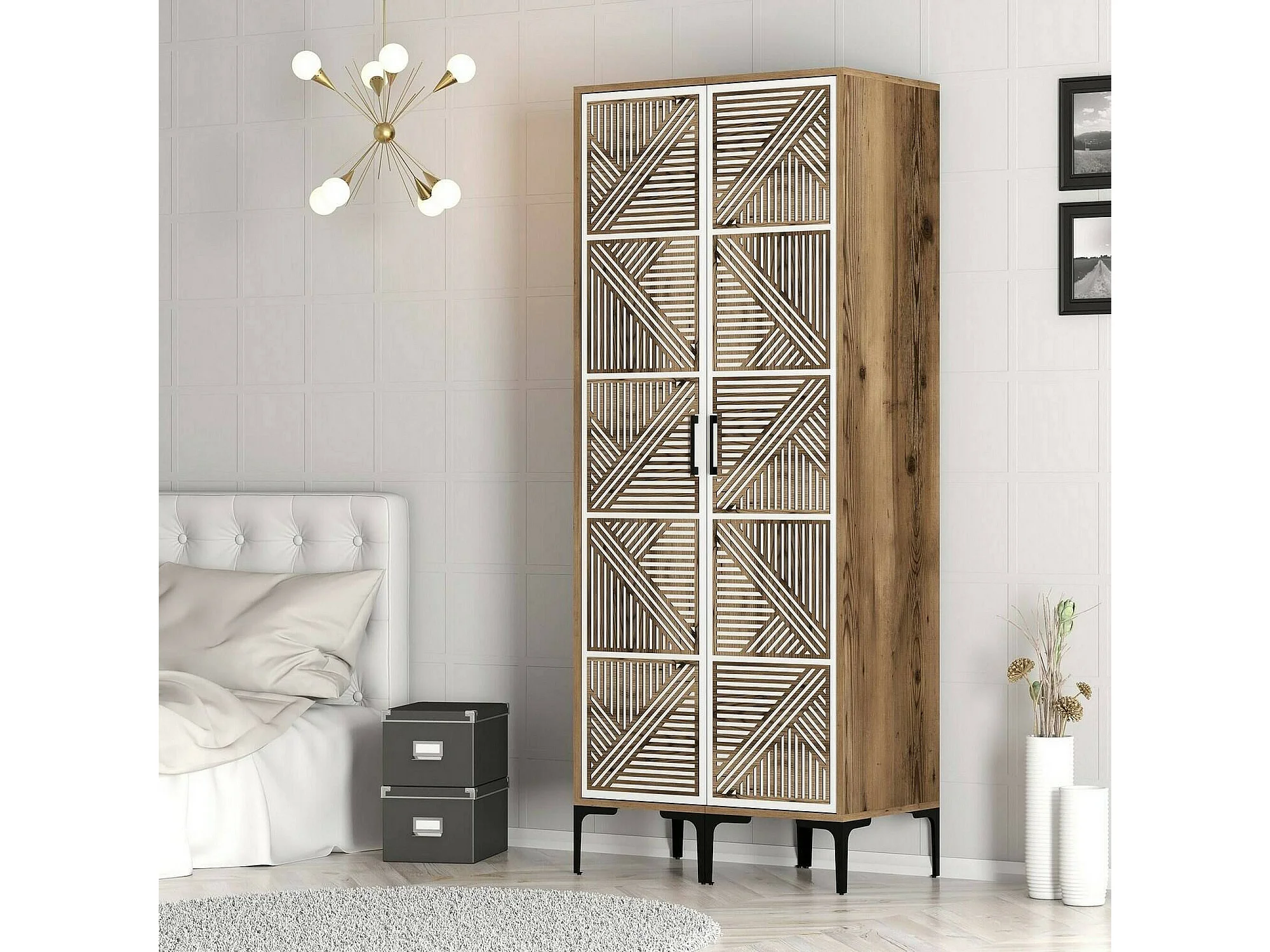 Kleiderschrank 2 Türen Dbonanse, Schlafzimmermöbel, Schrank, Garderobe, 80x201h48 cm, Walnuss und Weiß