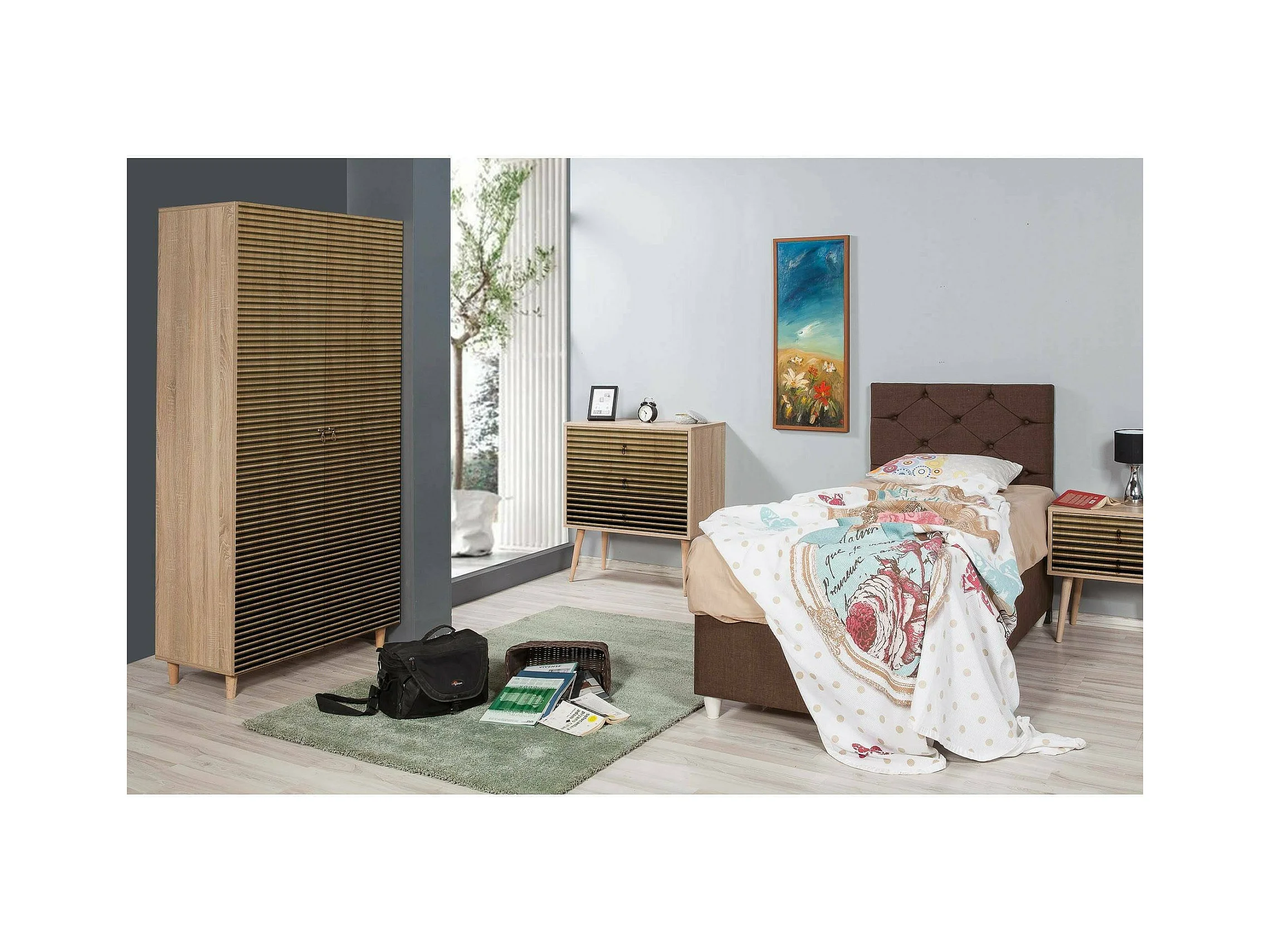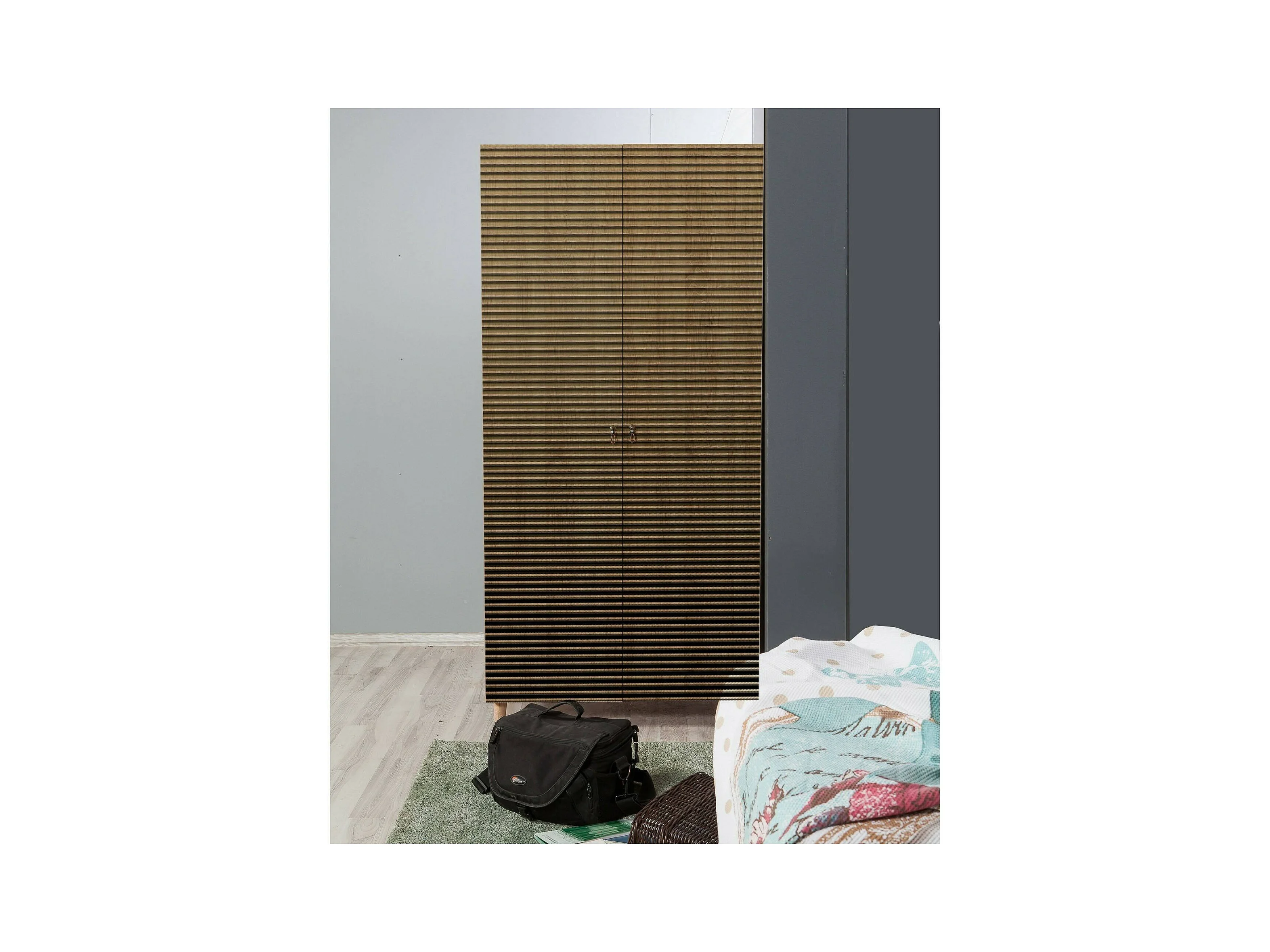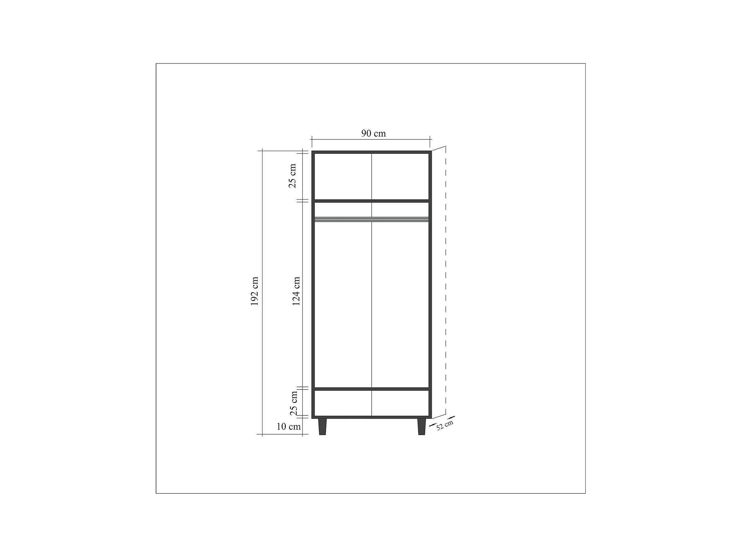 Kleiderschrank 2 Türen Dfrollan, Schlafzimmermöbel, Schrank, Garderobe, 90x52h192 cm, Eiche