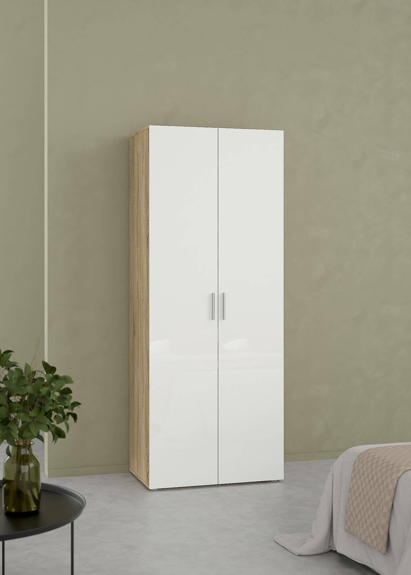 Kleiderschrank 2 Türen Dscamacc, Schlafzimmermöbel, Schrank, Garderobe, 79x50 h201 cm, Eiche und Weiß