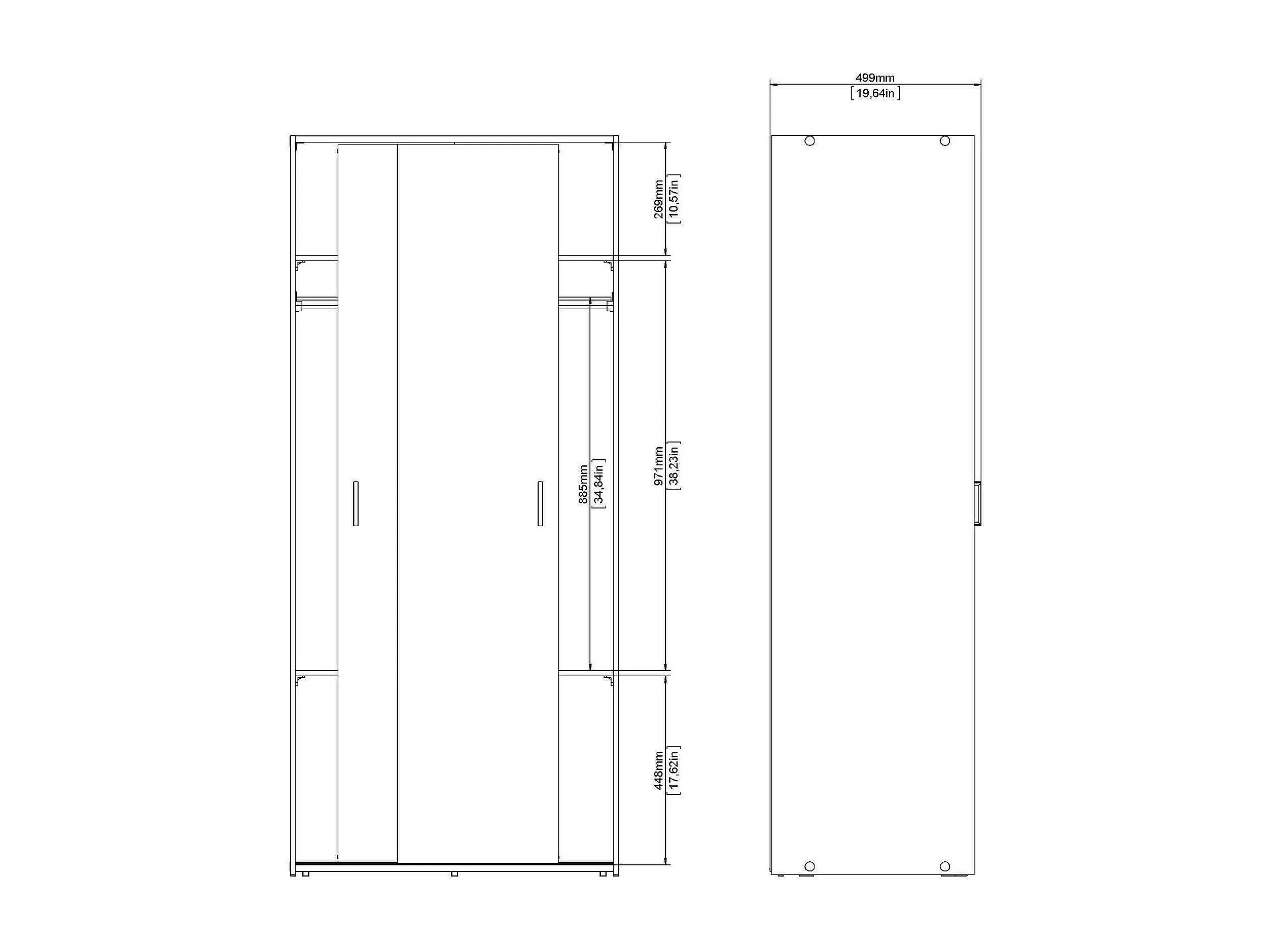 Kleiderschrank 2 Türen Dscapuzz, Schlafzimmermöbel, Schrank, Garderobe, 78x48 h175 cm, Weiß