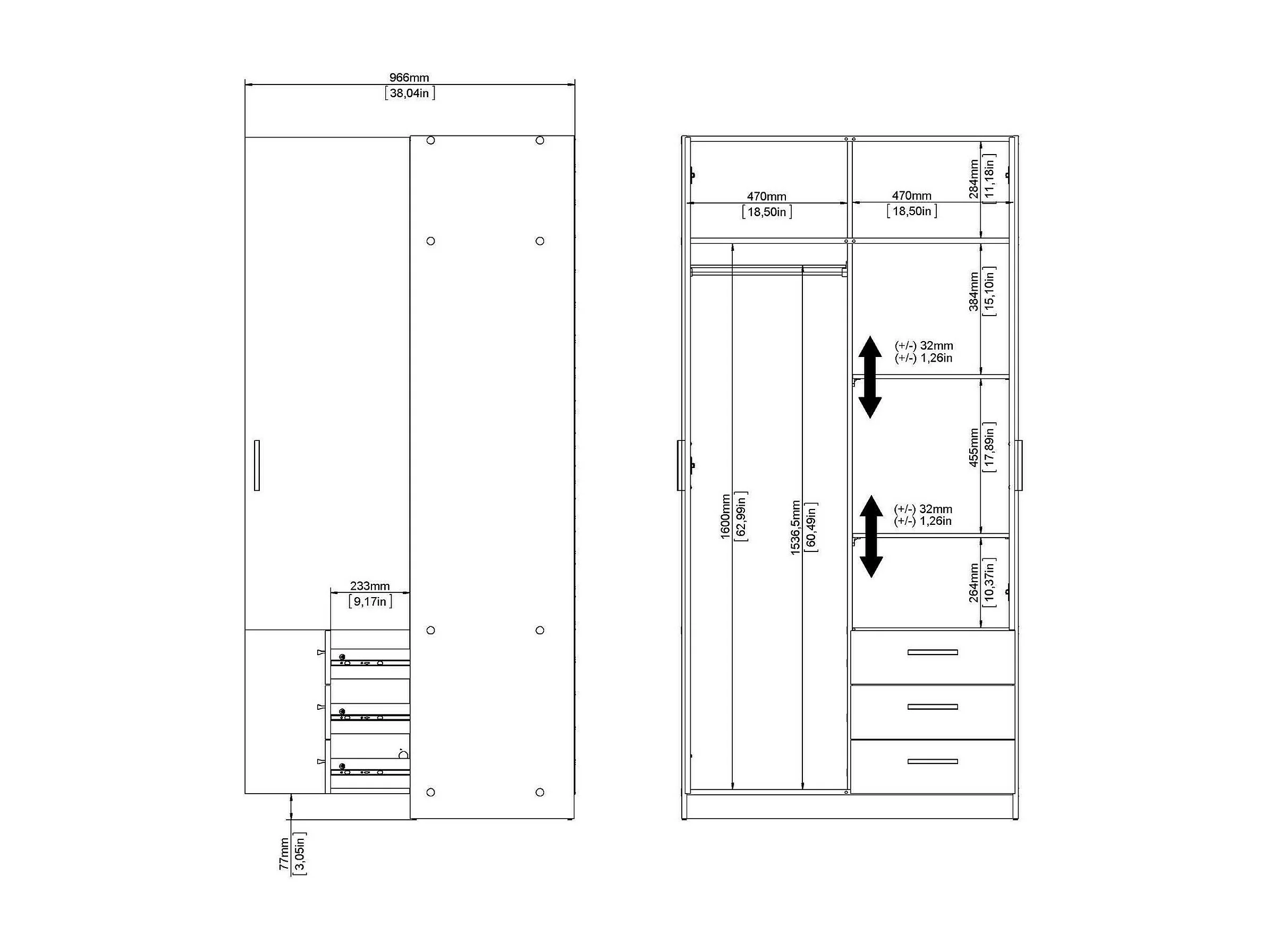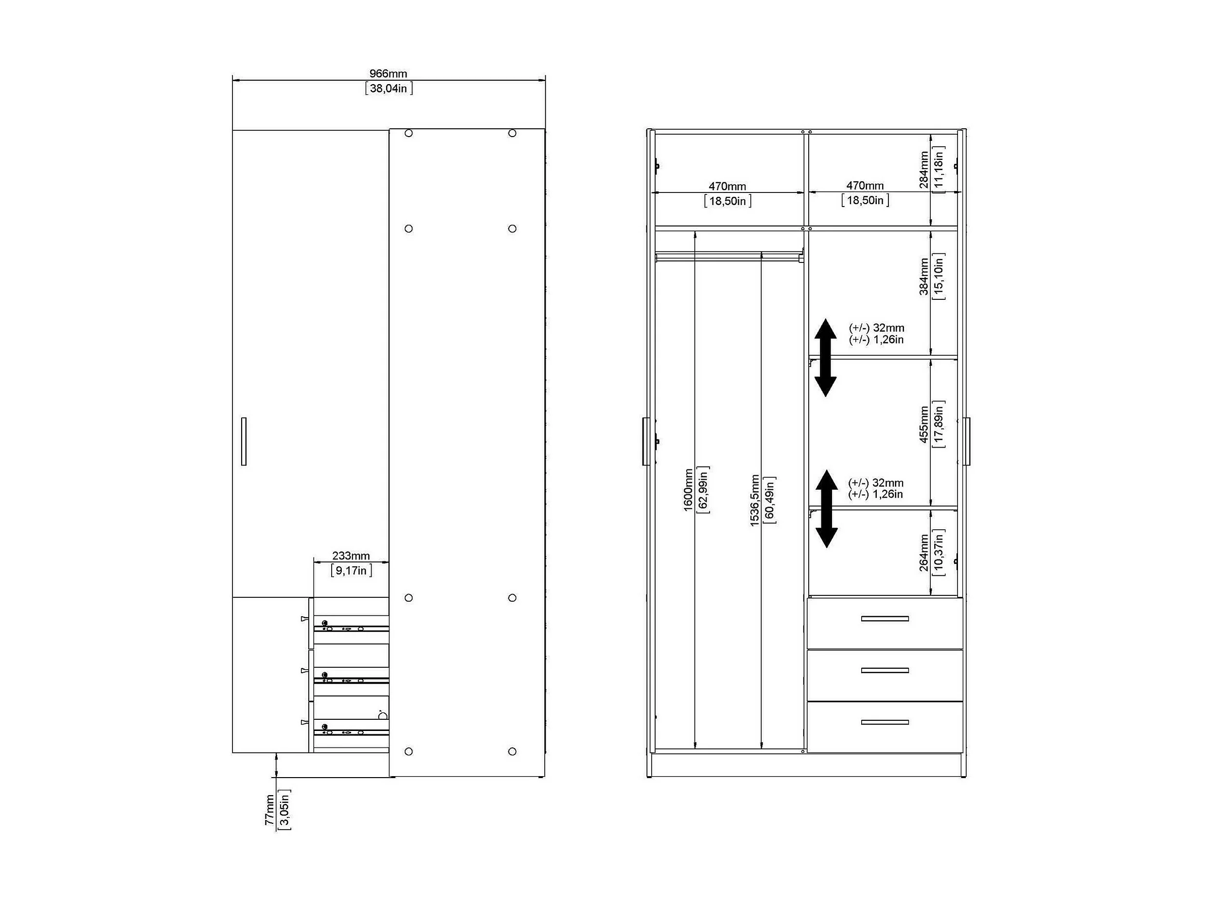 Kleiderschrank 2 Türen Dscopon, Schlafzimmermöbel, Schrank, Garderobe, 99x50 h200 cm, Grau