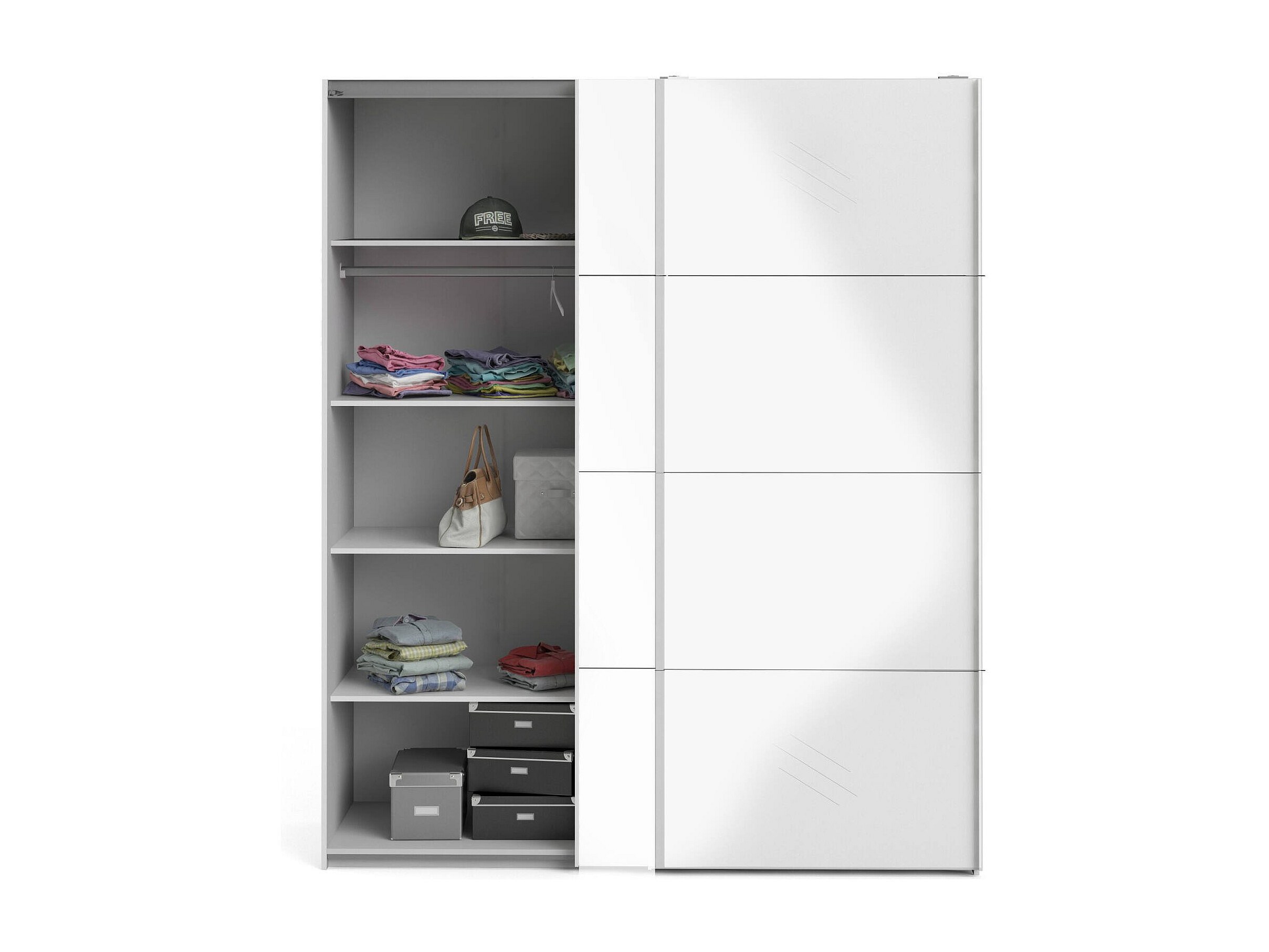 Kleiderschrank 2 Türen Paeng, Schlafzimmermöbel, Schrank, Garderobe, 182x61 h220 cm, Glänzendes Weiß