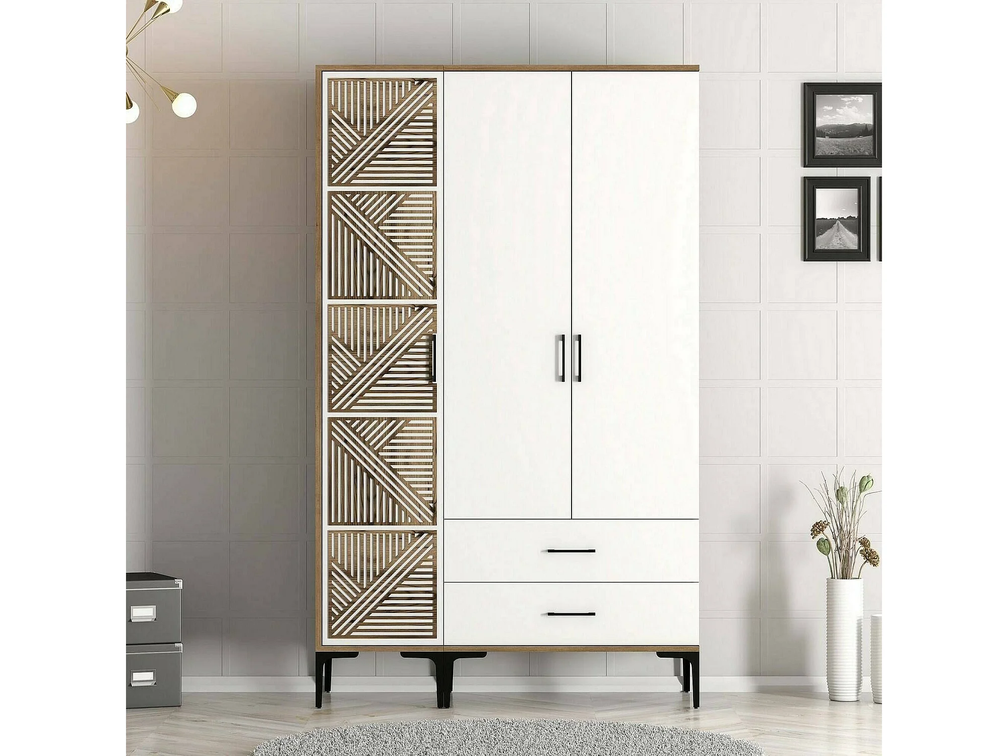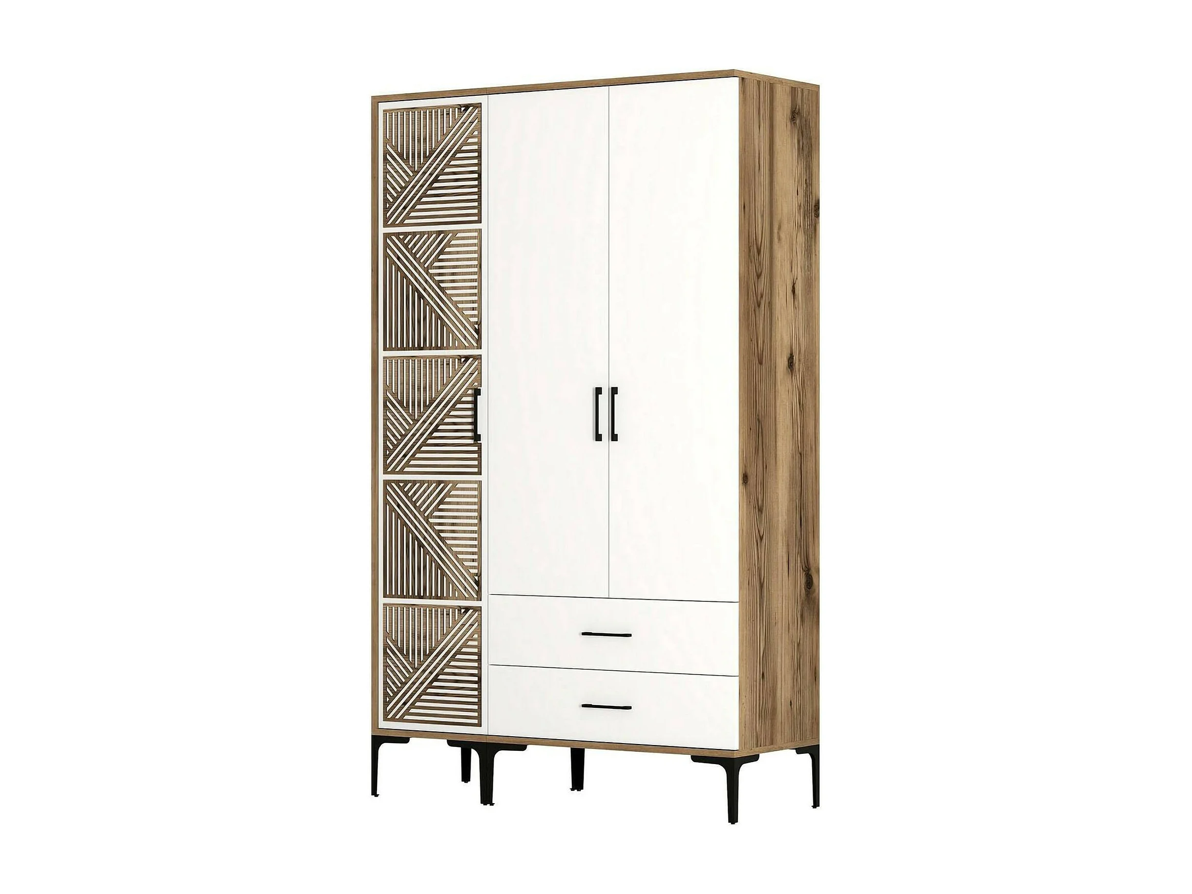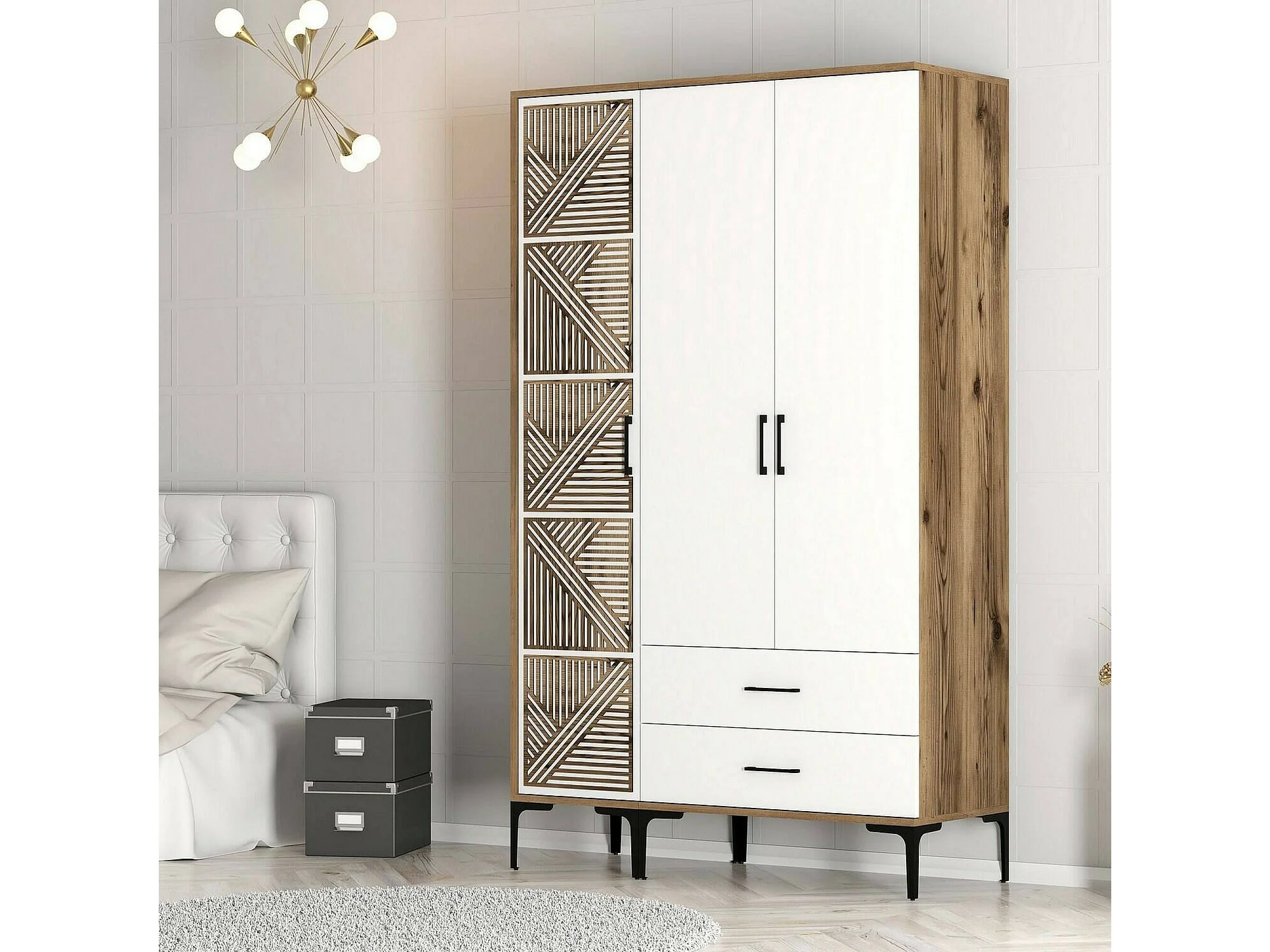 Kleiderschrank 3 Türen Dgalbiat, Schlafzimmermöbel, Schrank, Garderobe, 120x48h201 cm, Walnuss und Weiß