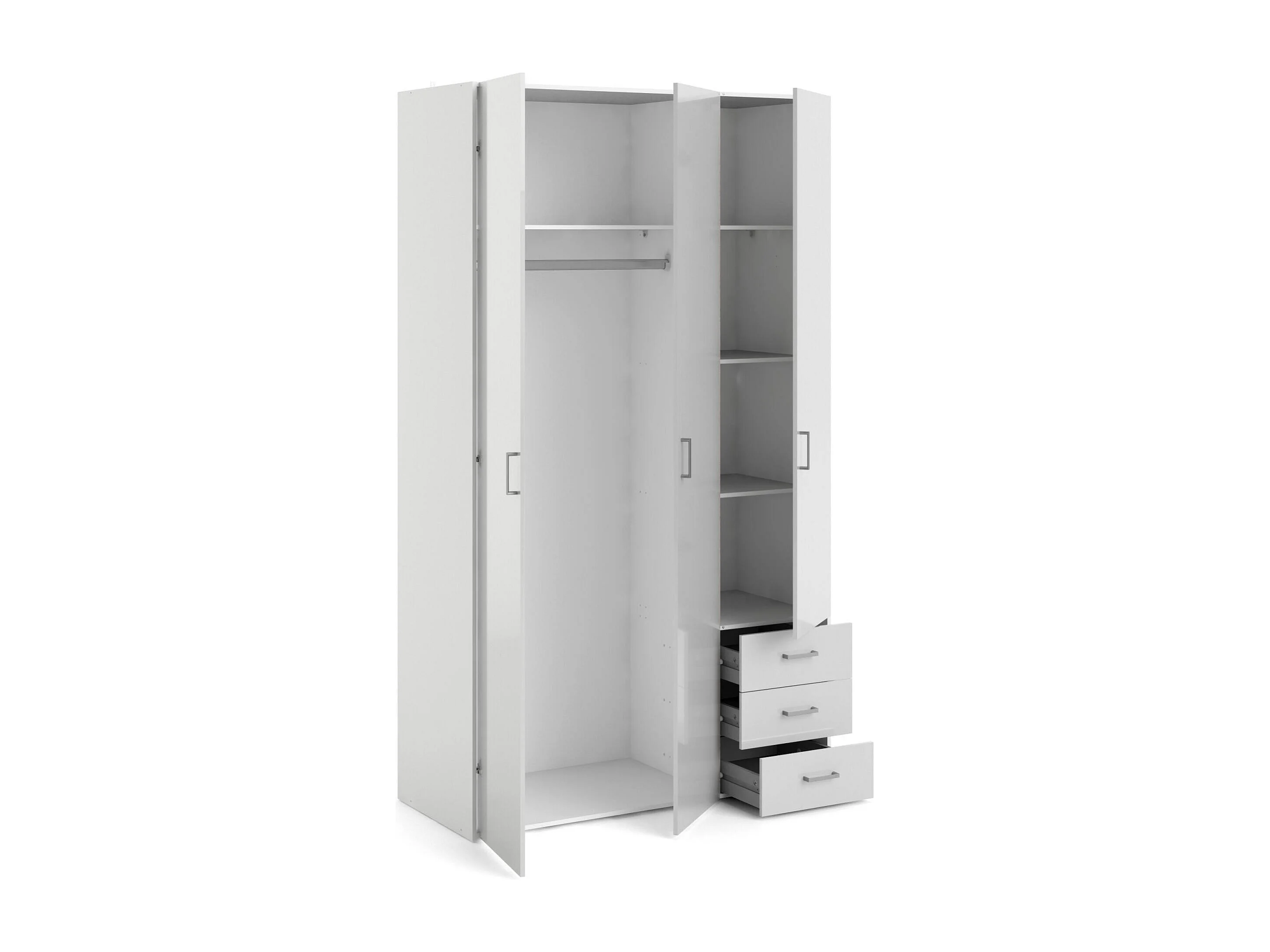 Kleiderschrank 3 Türen Dsemplic, Schlafzimmermöbel, Schrank, Garderobe, 116x50 h200 cm, Weiß
