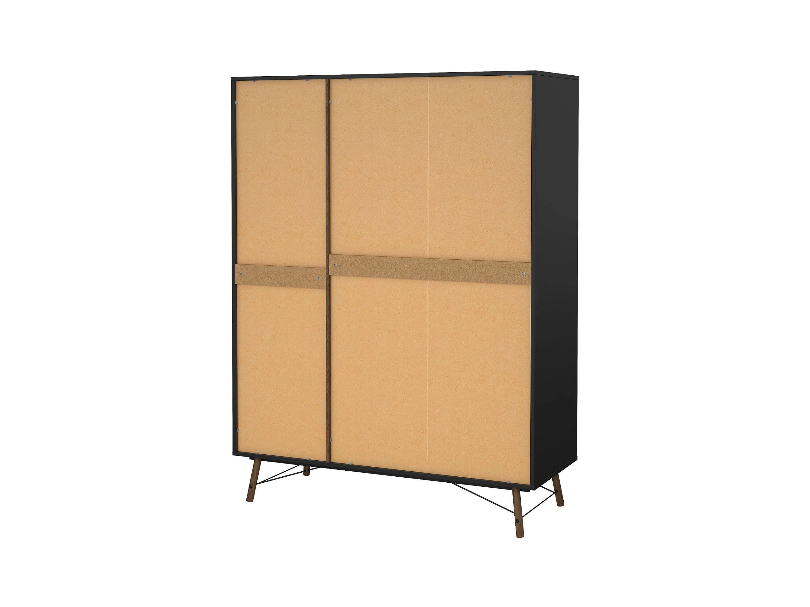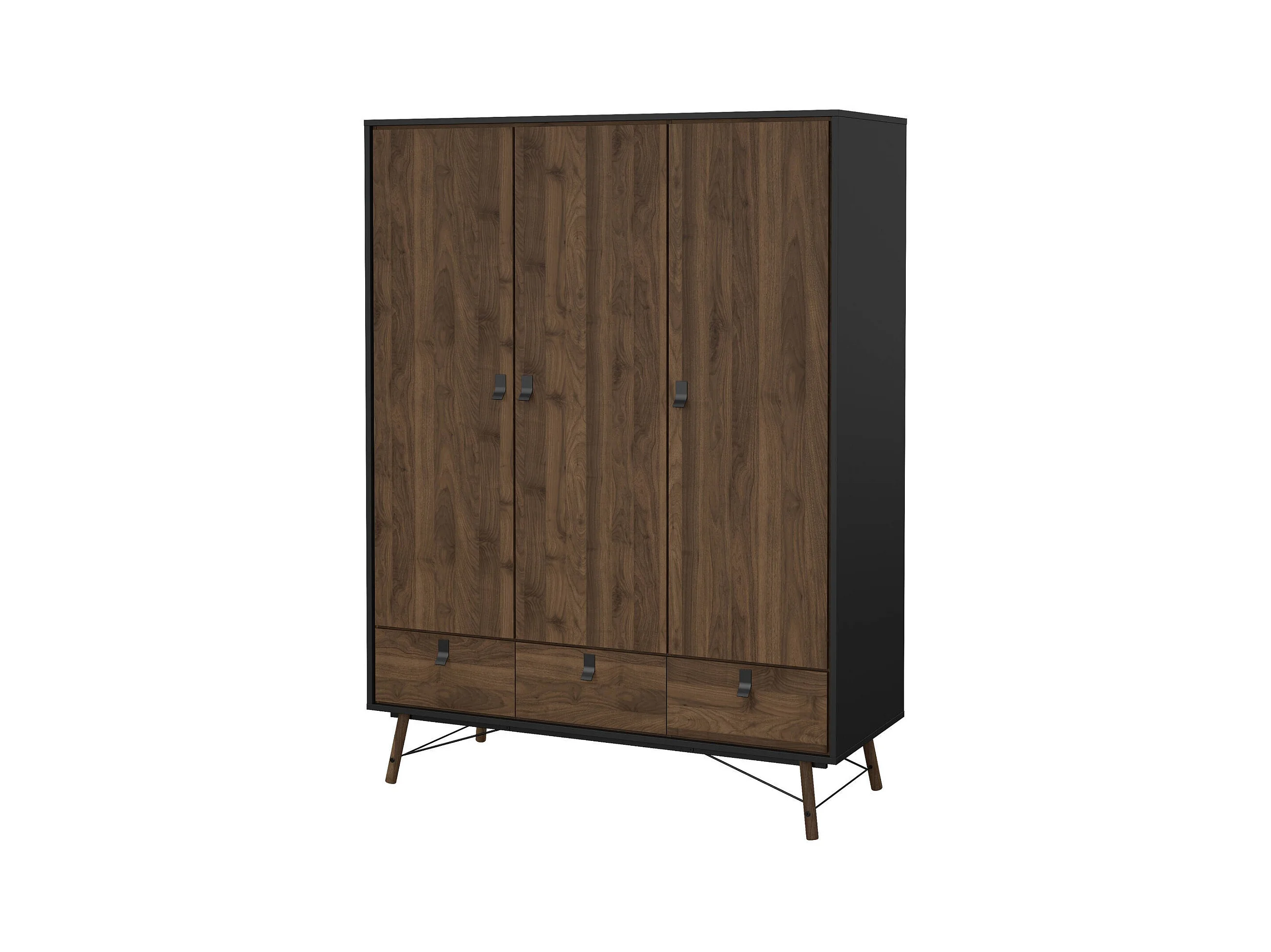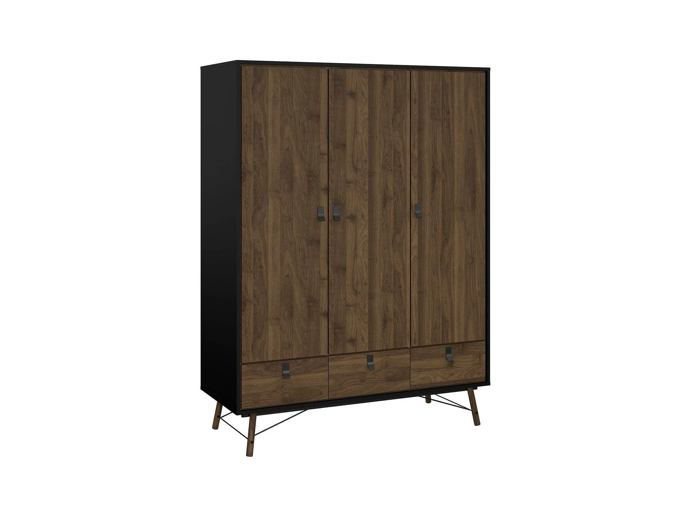 Kleiderschrank 3 Türen Dverdell, Schlafzimmermöbel, Schrank, Garderobe, 150x60 h200 cm, Schwarz und Walnuss
