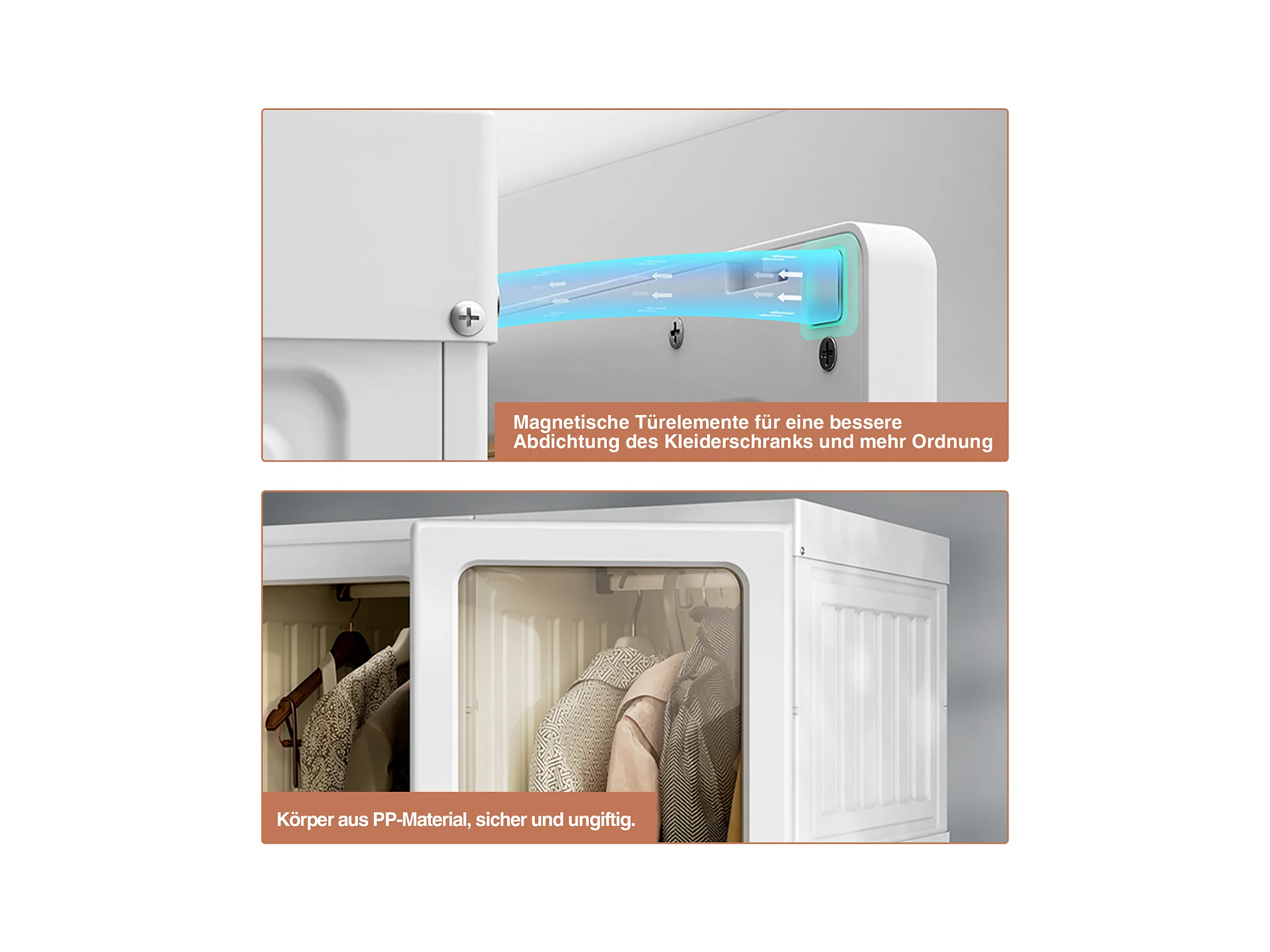 Kleiderschrank 69 x 170 x 50 cm (B x H x T) Einfacher Aufbau Kleiderschrank mit Magnettüren Weiß