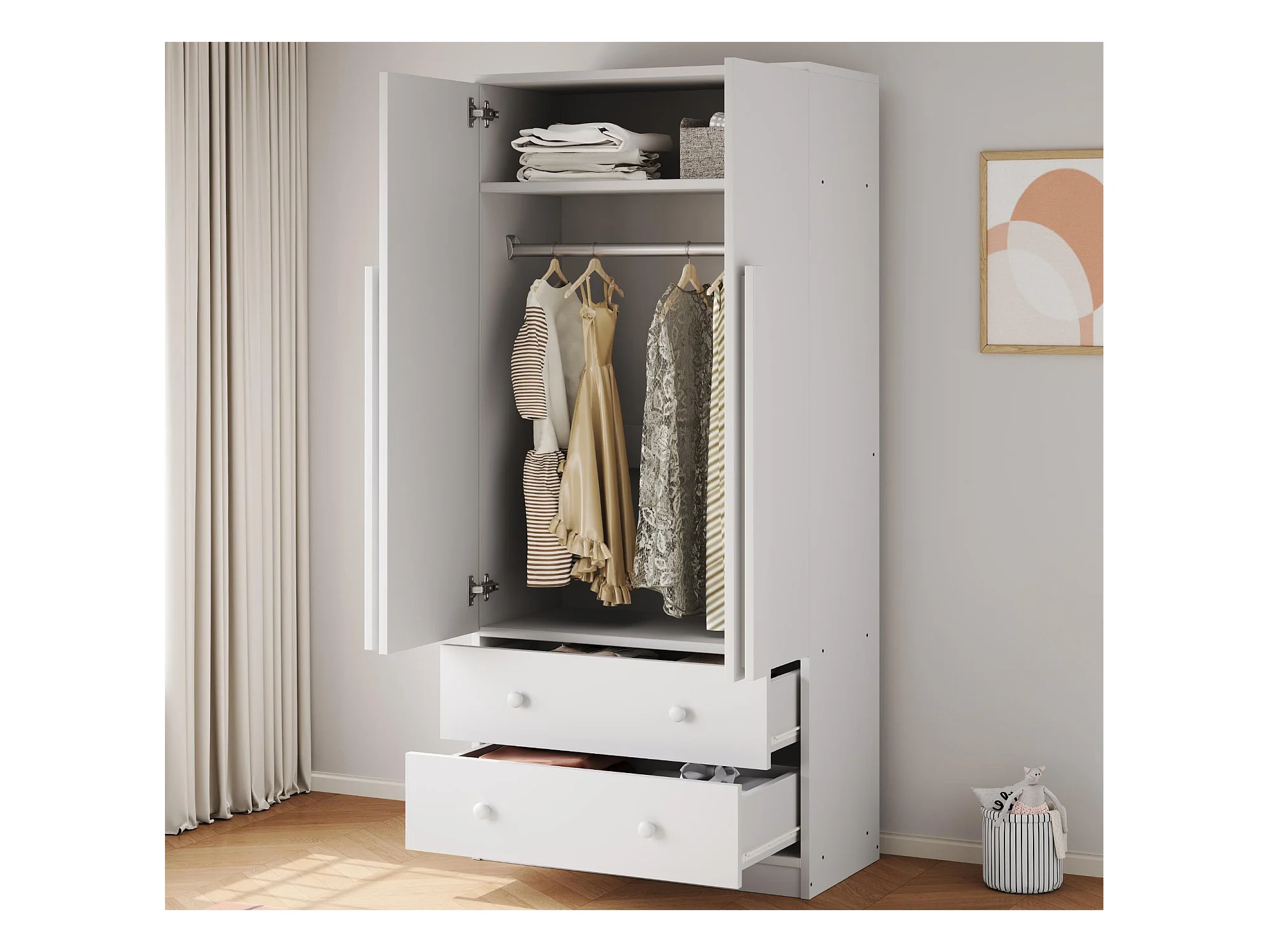 Kleiderschrank 70x40x170 cm - 2 Türen & 2 Schubladen mit Fächern - Weiß