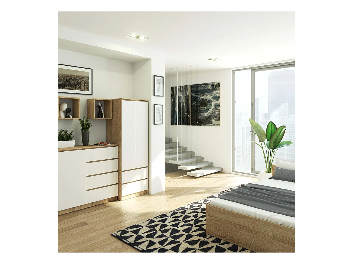 Kleiderschrank AKORD S60 Sonoma-Eiche 60 cm 2 Türen 2 Schubladen Regal Front Weiß B60 x H180 x T51 cm