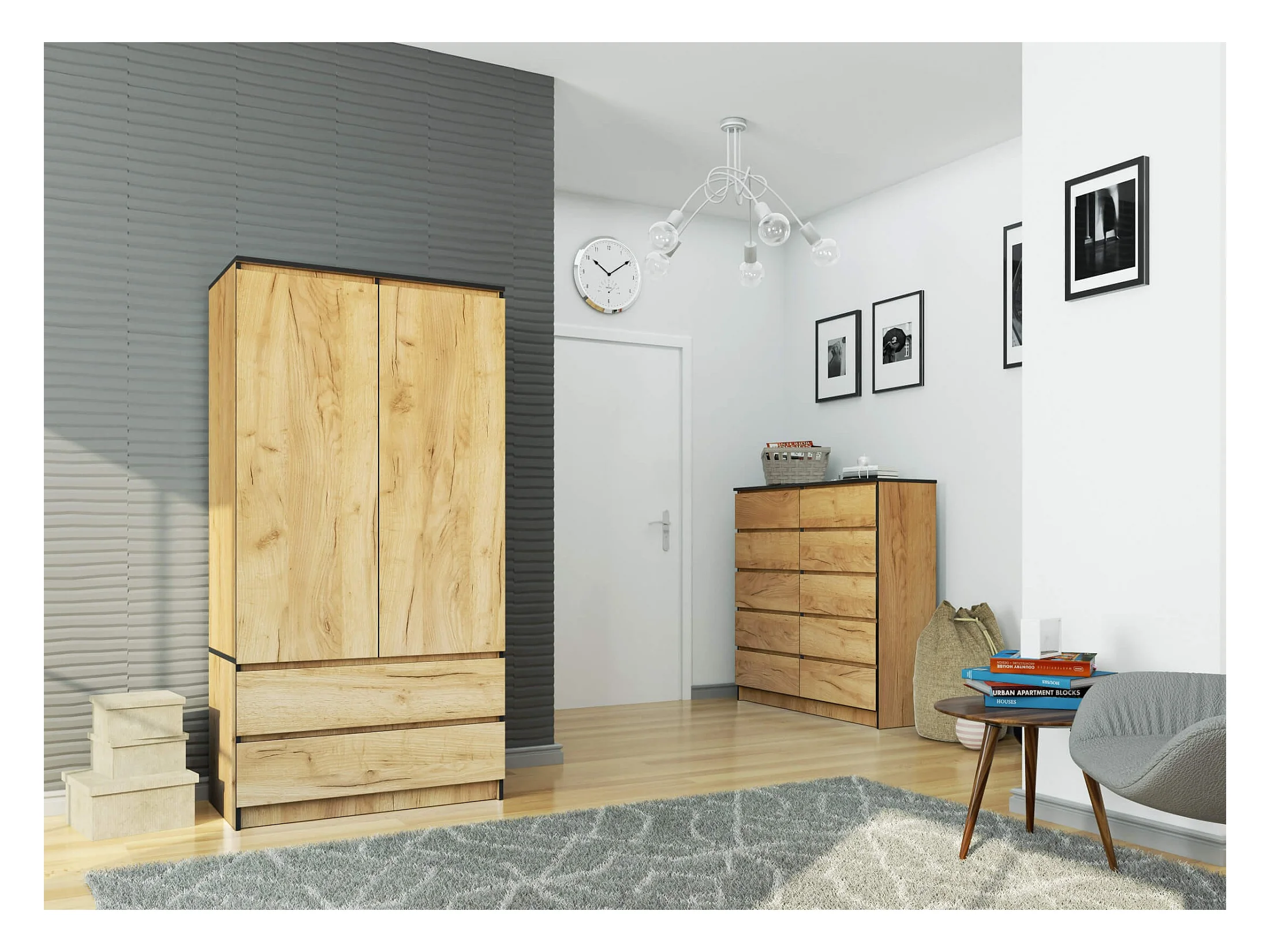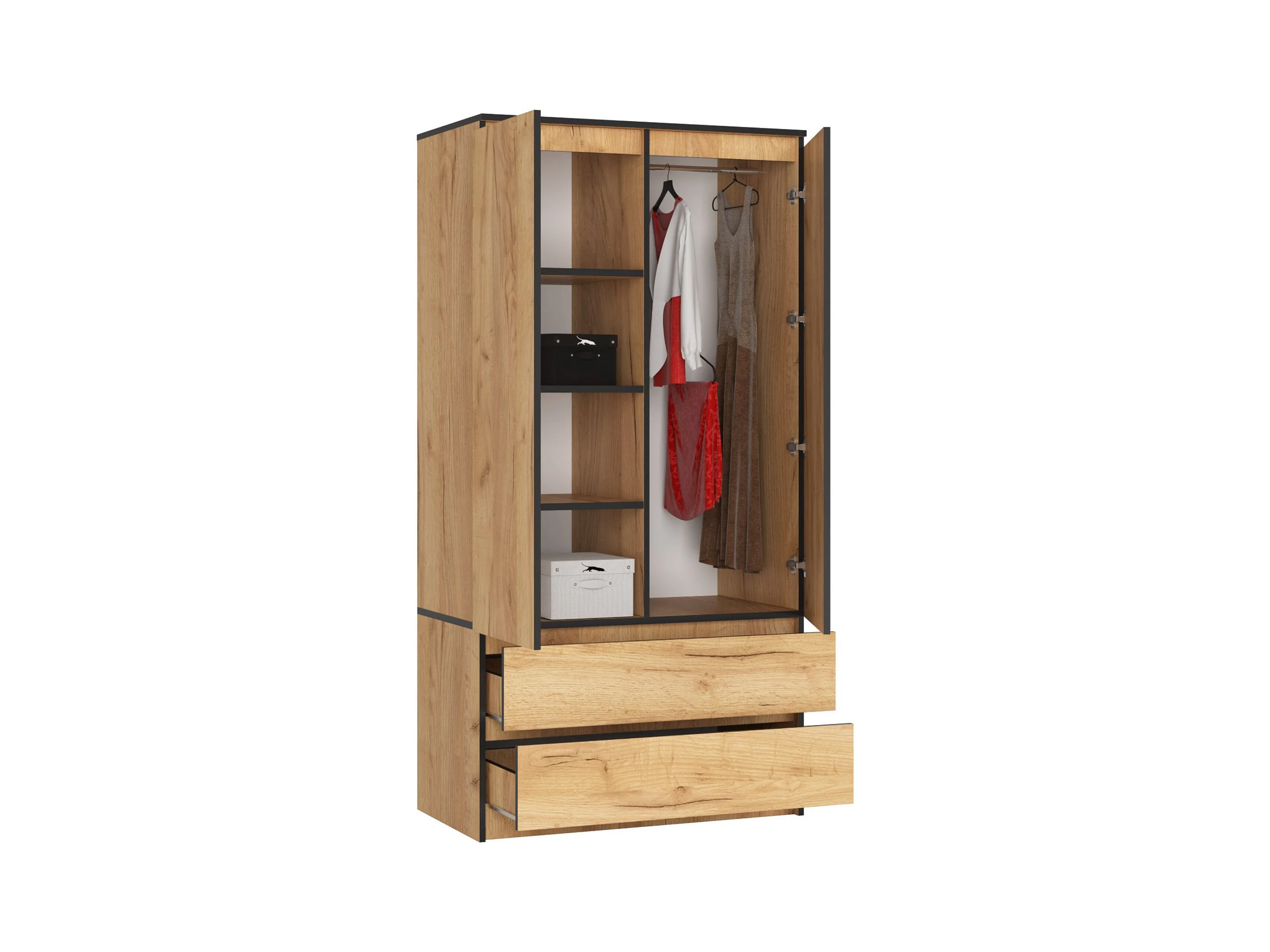 Kleiderschrank AKORD S90 Eiche Craft 90 cm 2 Türen 2 Schubladen 4 Ebenen B90 x H180 x T51 cm
