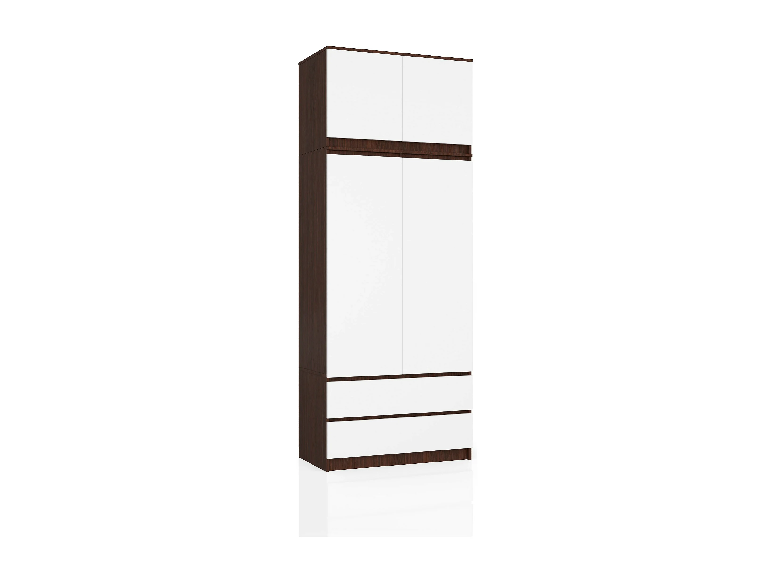 Kleiderschrank AKORD S90 mit Aufsatz Wenge 90 cm 2 Türen 2 Schubladen 6 Ebenen Front Weiß B90 x H234 x T51 cm