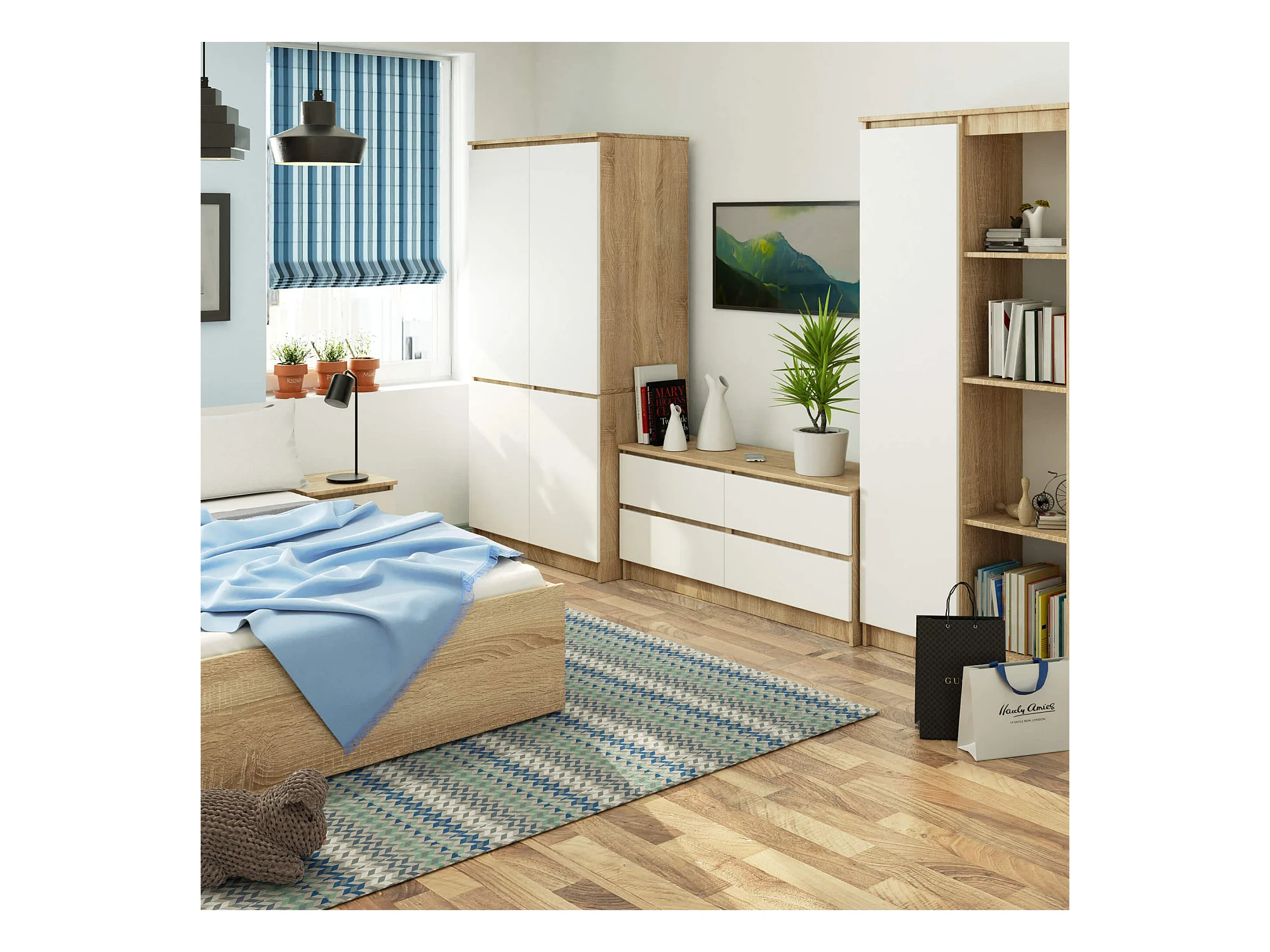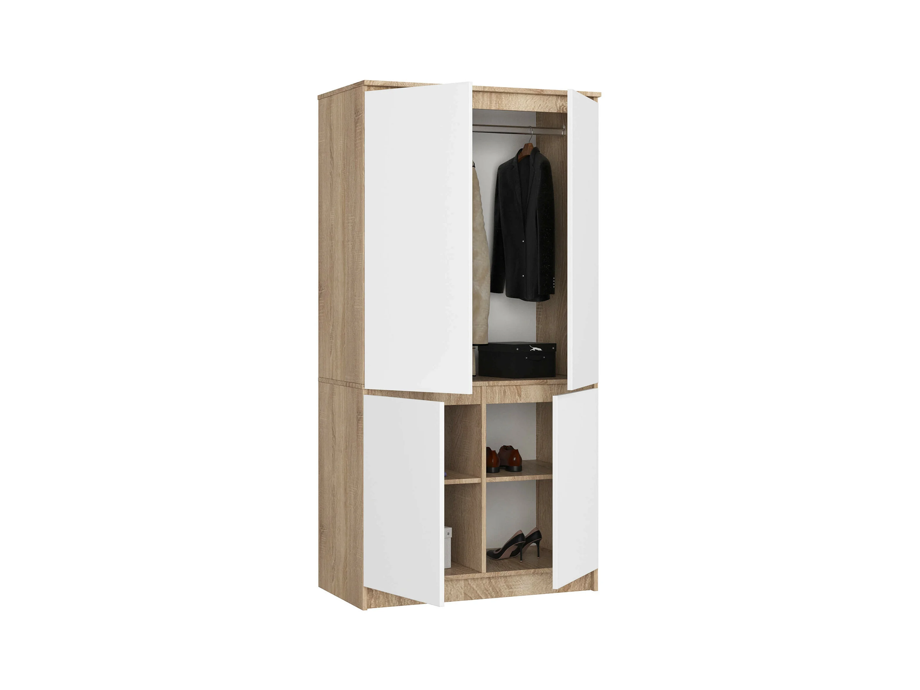Kleiderschrank AKORD S90 Sonoma Eiche, Weiß 90 cm 4 Türen 4 Regalböden B90xH180xT51 cm
