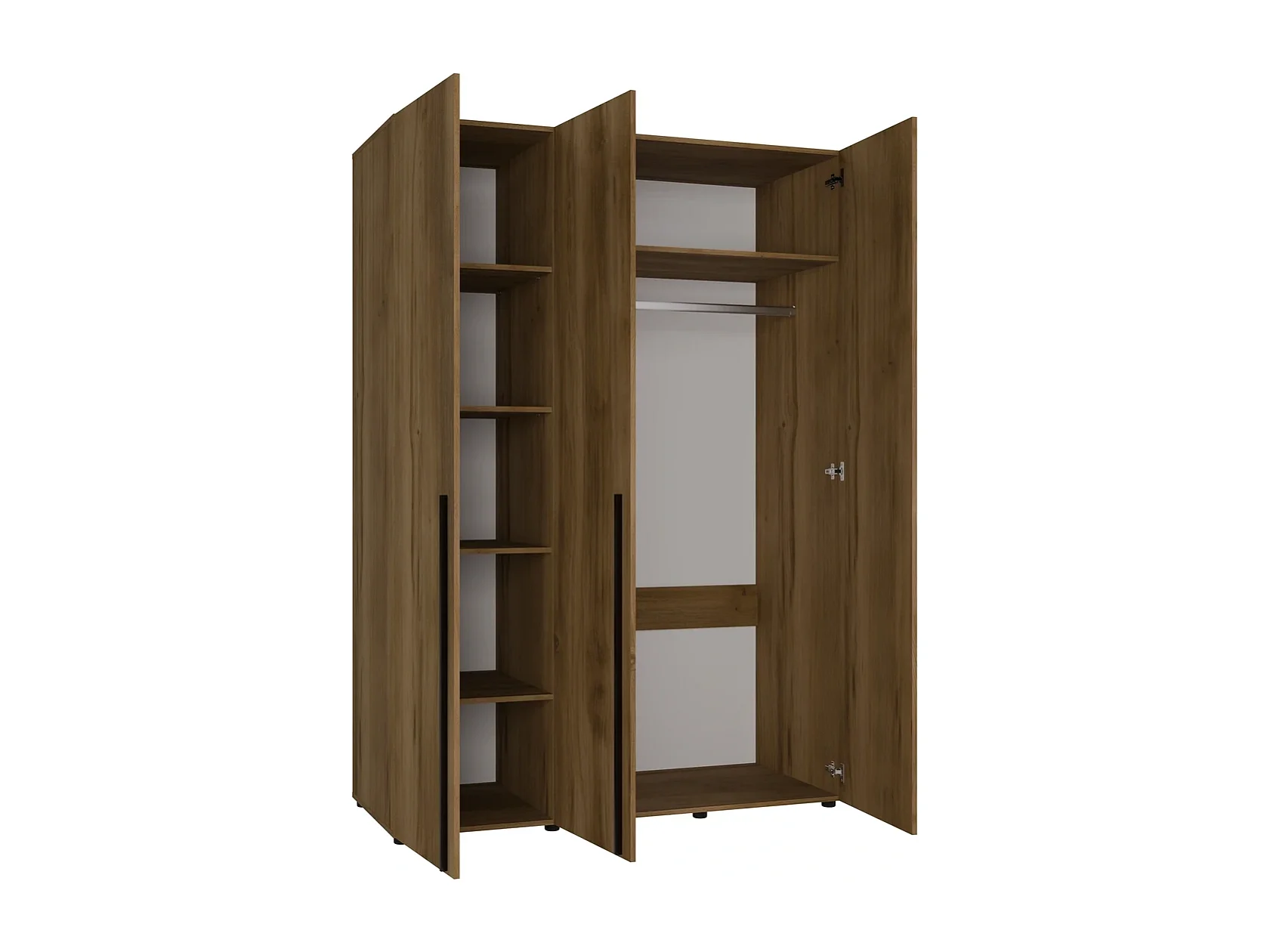 Kleiderschrank Arni 150 cm - 3 Drehtüren Eiche Gold Barock - Kleiderstange und Einlegeböden