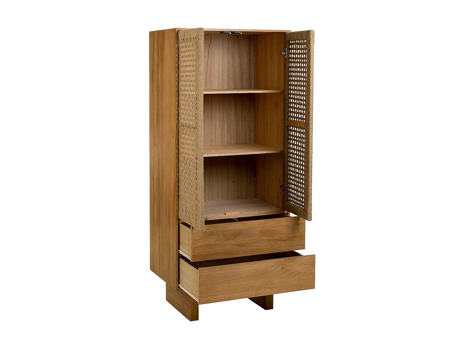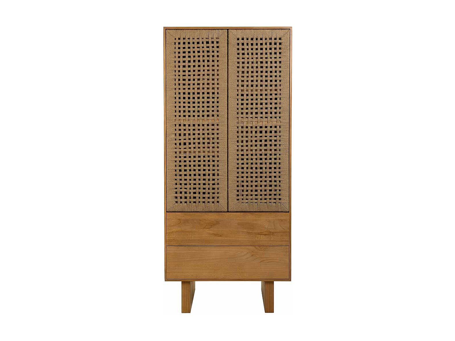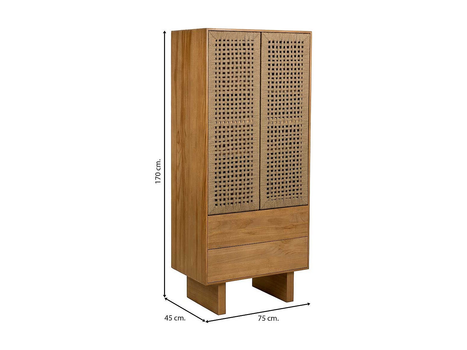 Kleiderschrank aus Holz und braunem geflochtenem Seil 75x45x170h cm