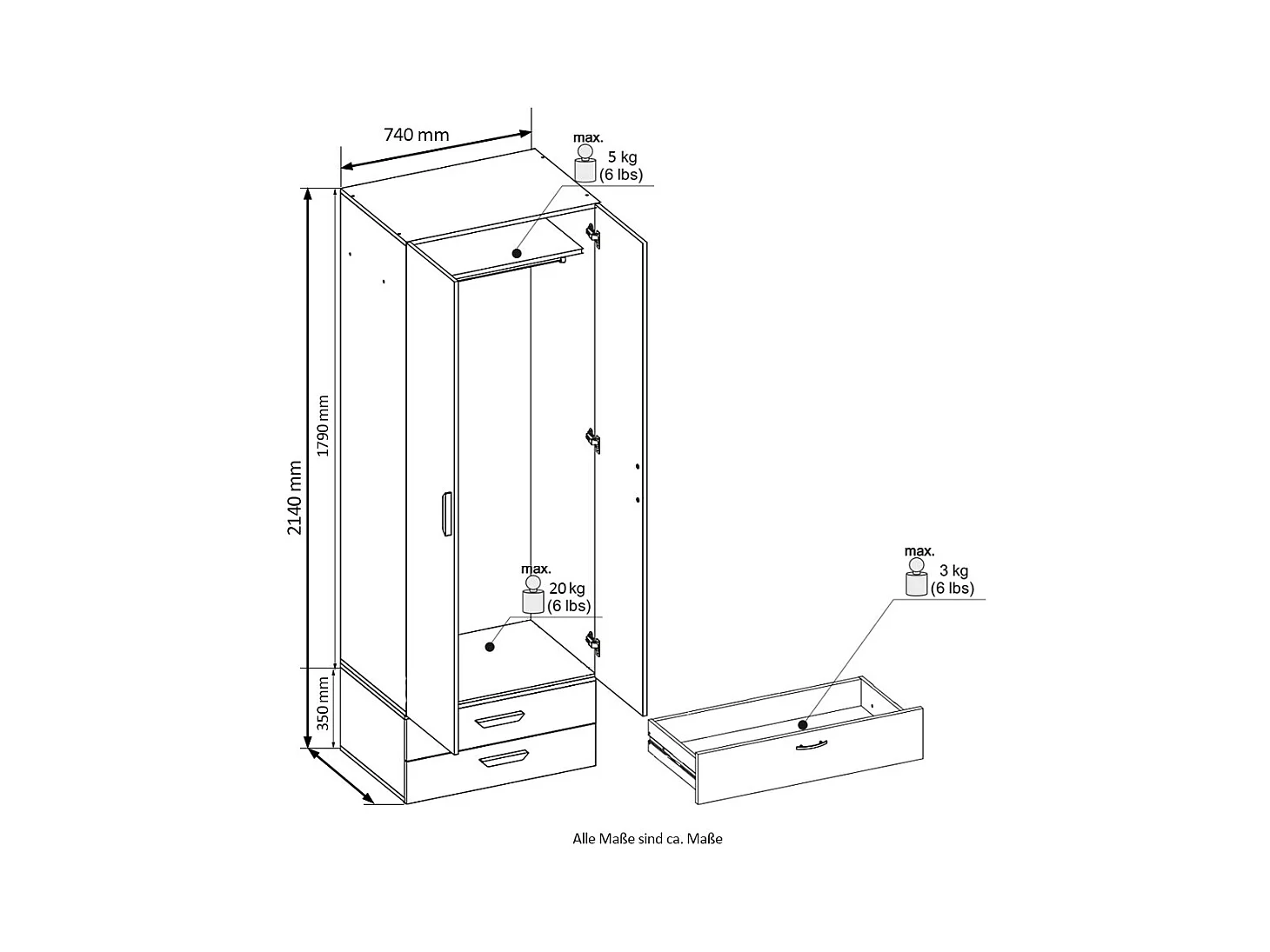 KLEIDERSCHRANK Basic Eiche Sonoma 74 / 52 / 214 cm