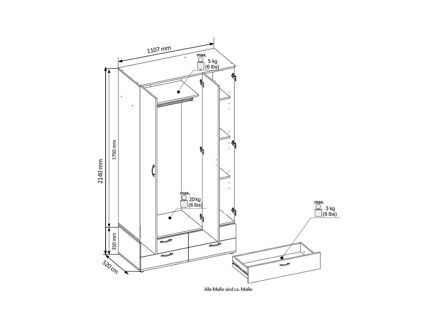 KLEIDERSCHRANK Basic Weiß 110,7 / 52 / 214 cm