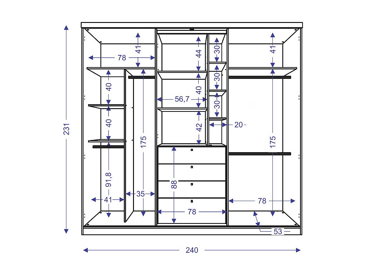 - Ca.-Maße Kleiderschrank: B 240 cm x T 53 cm x H 231 cm
