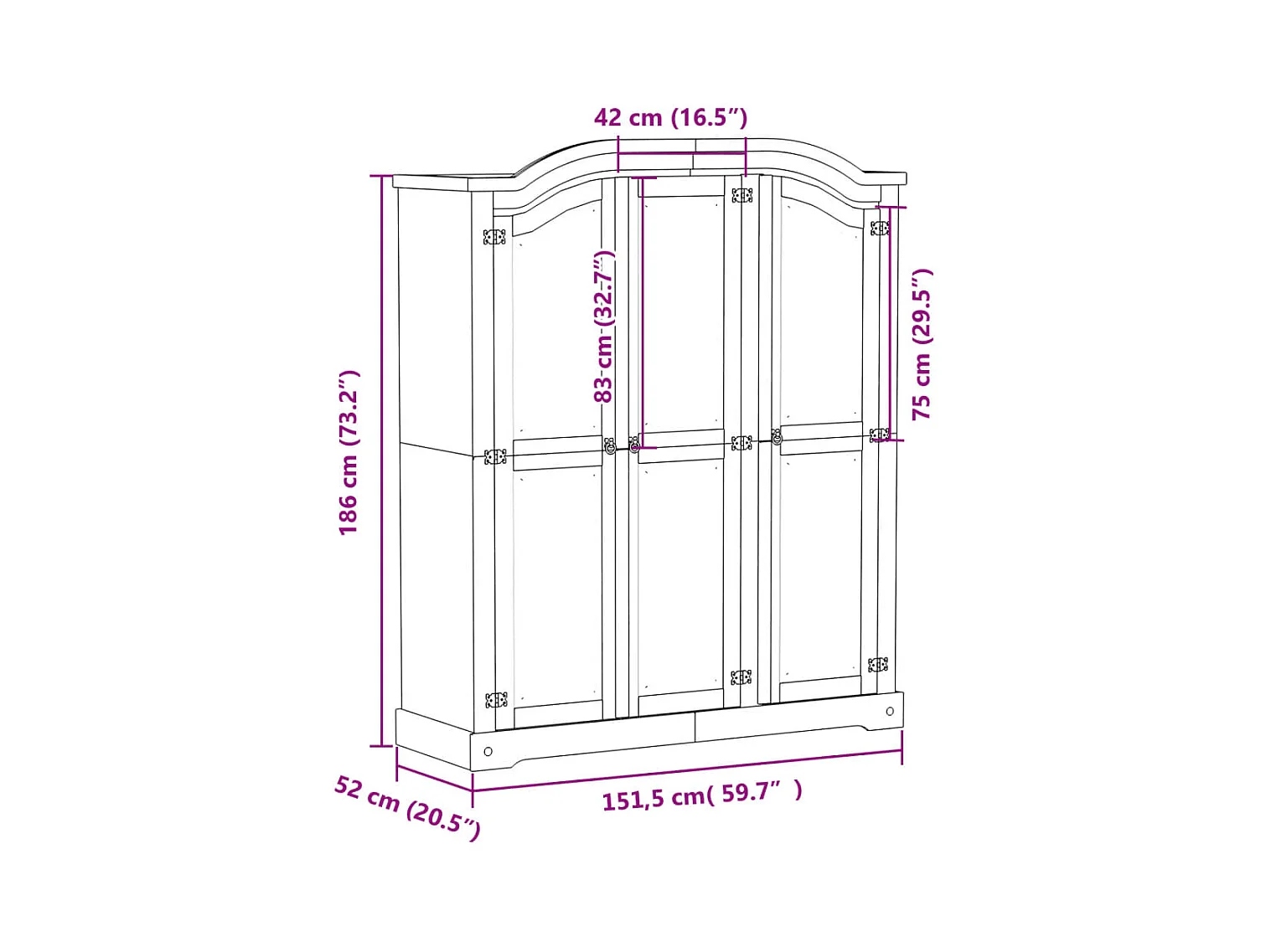 Kleiderschrank Corona 151,5x52x186 cm Massivholz Kiefer