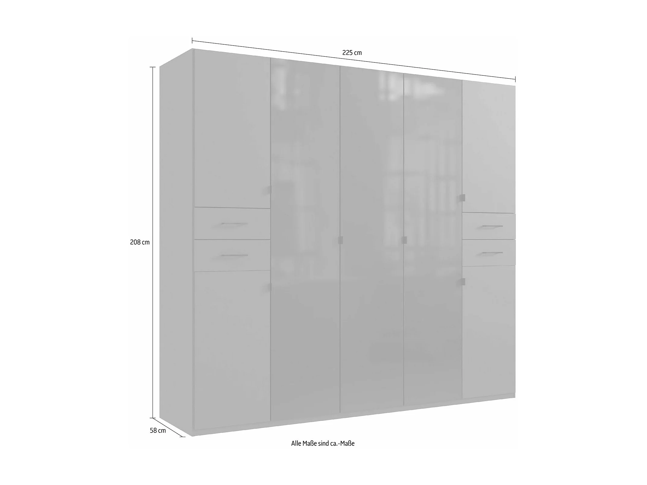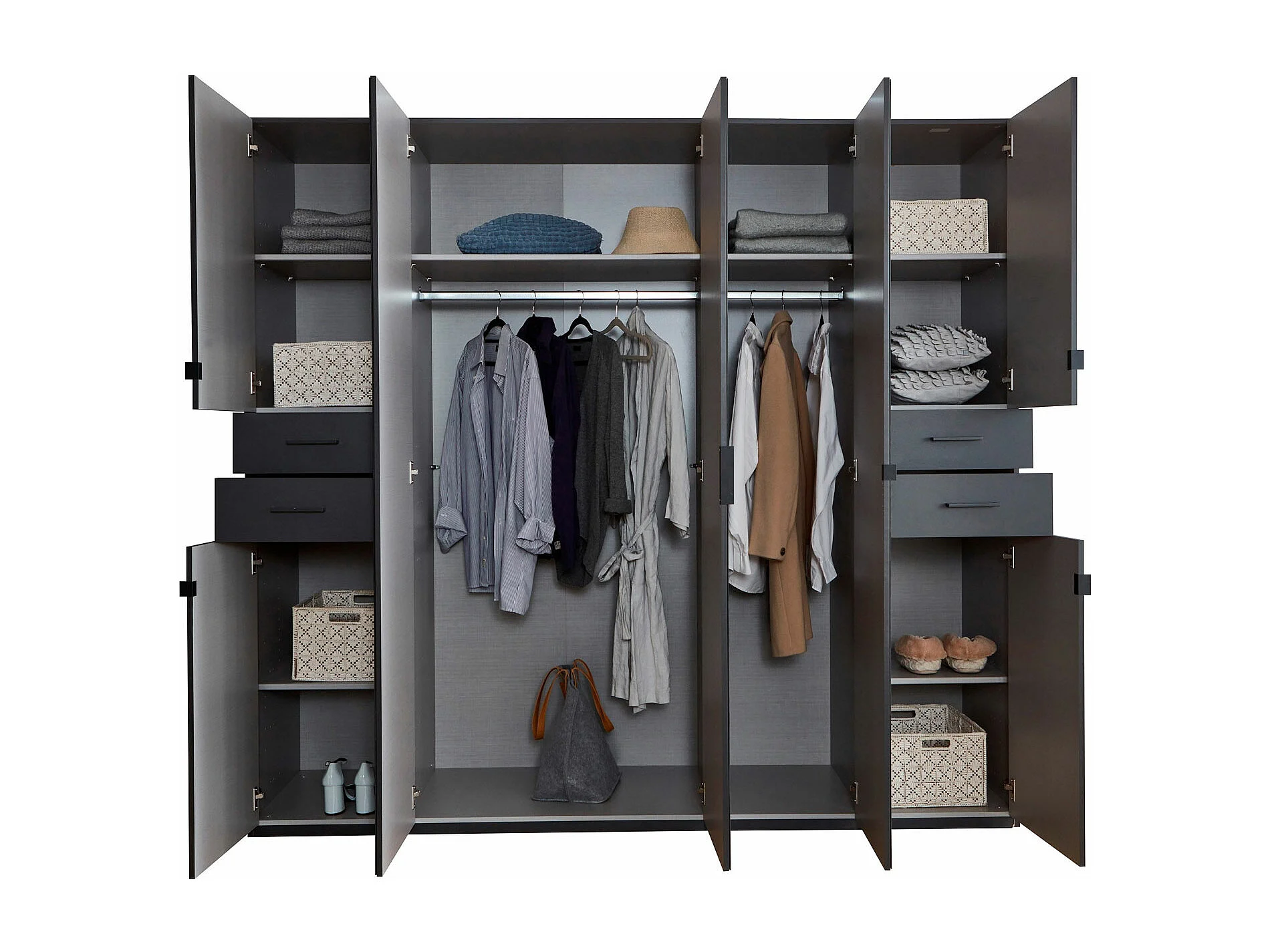 KLEIDERSCHRANK Danzig Graphit / Glasschwarz 225 / 58 / 208cm