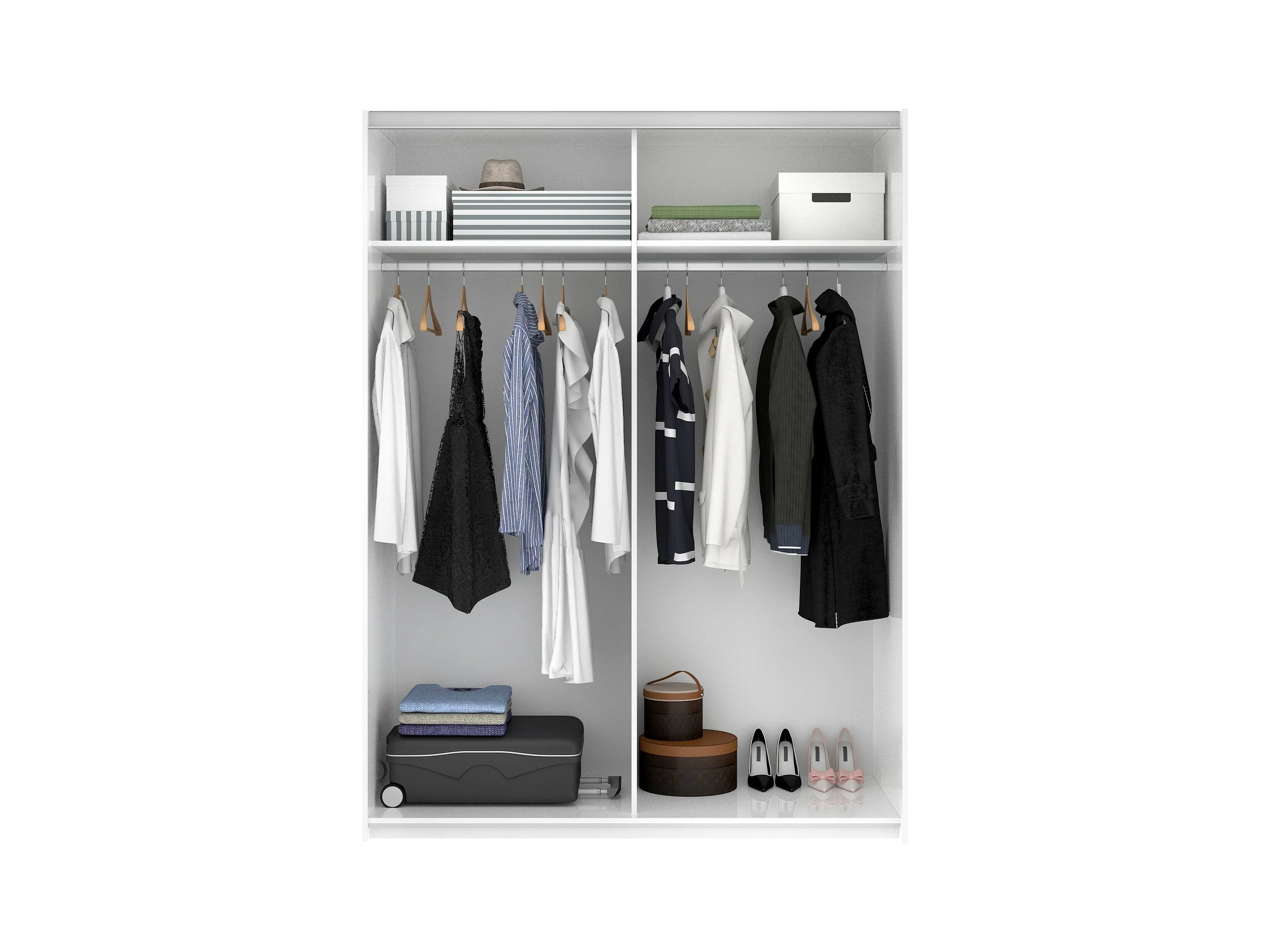 Kleiderschrank Dlazovi, Garderobe für Schlafzimmer, Kleiderschrank mit 2 Schiebetüren, 150x65h204 cm, Weiß